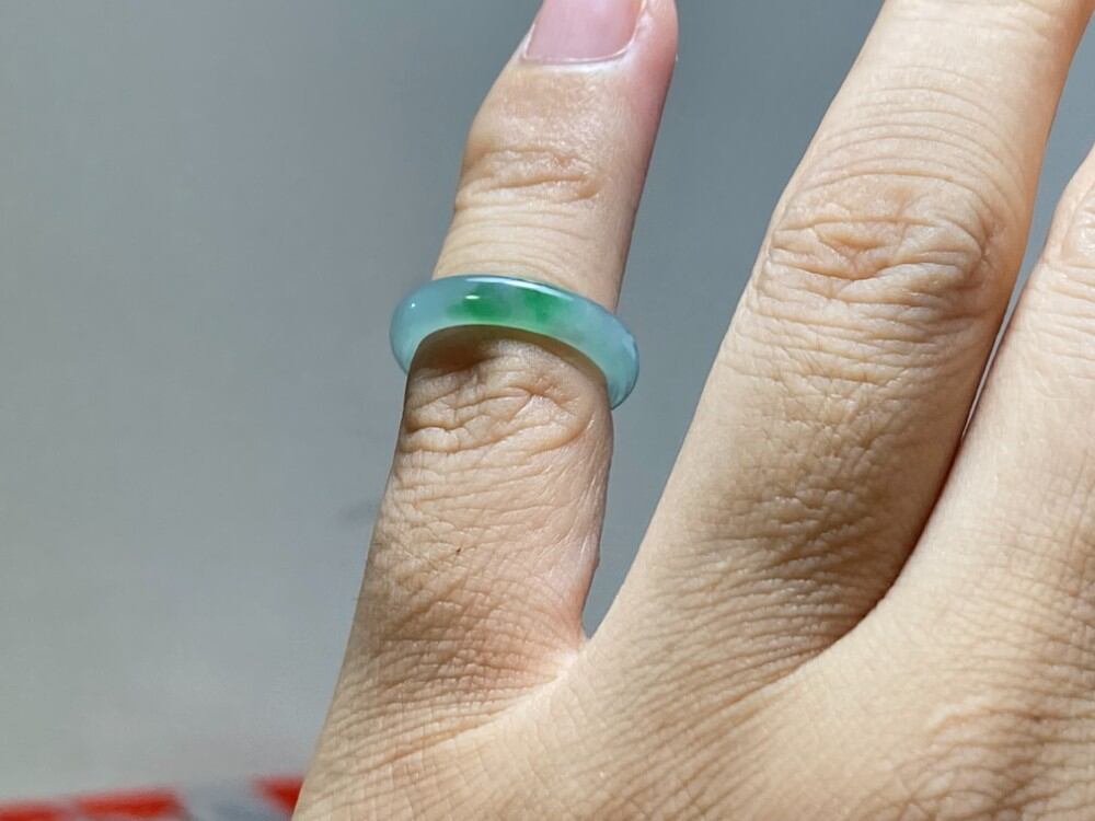 L13-151 ピンキーリング 氷糯種 薄青緑底点陽緑 1.5号 グアテマラ産 A貨 本翡翠 くりぬき リング