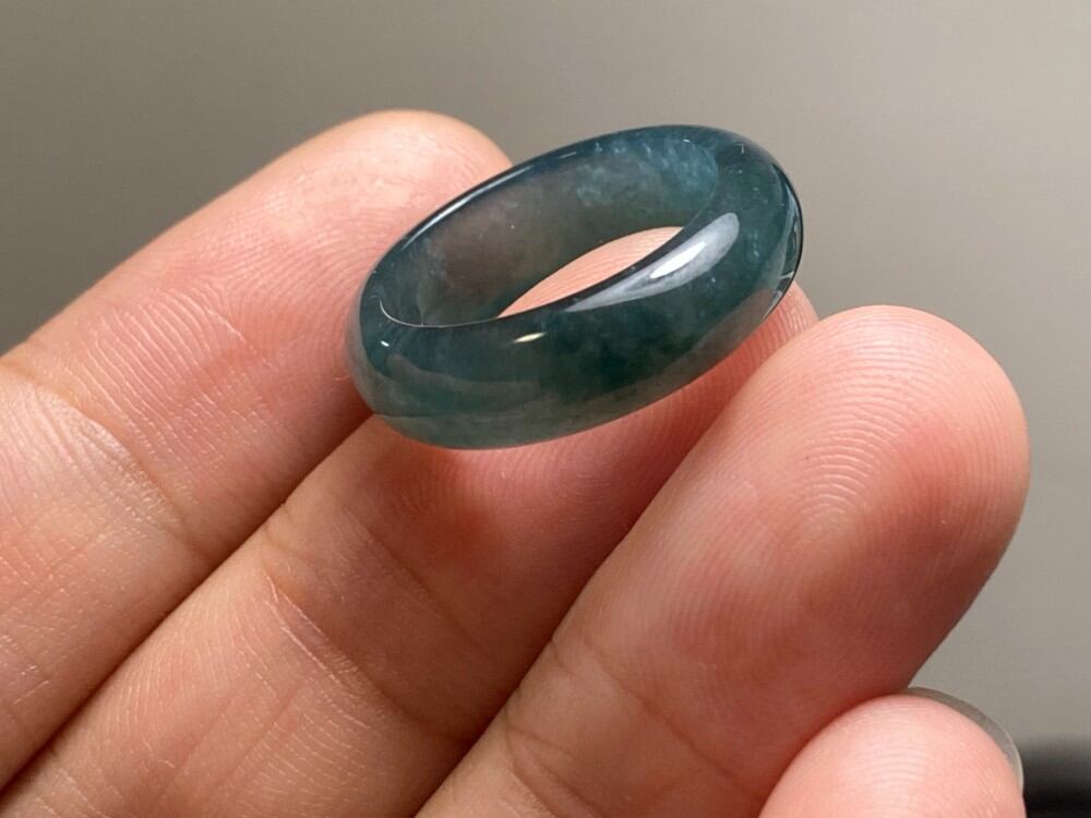 L13-165 氷糯種 紺色 10.5号 グアテマラ産 A貨 本翡翠 くりぬき リング