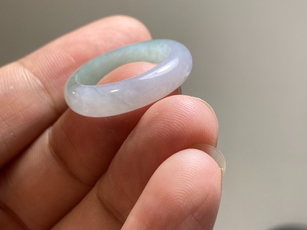 L13-184 白緑 氷糯種 13.5号 ミャンマー産天然 A貨 本翡翠 くりぬき リング