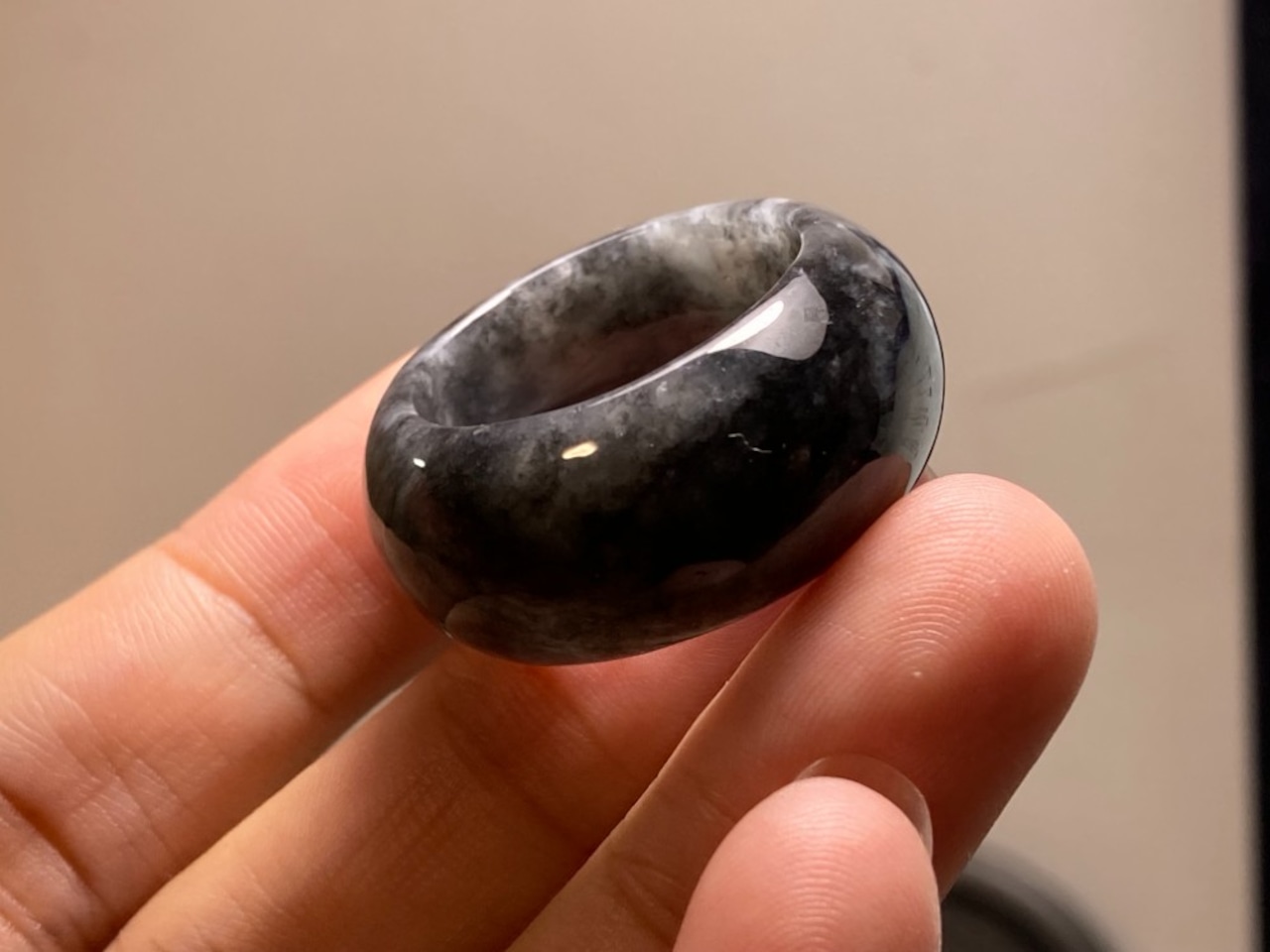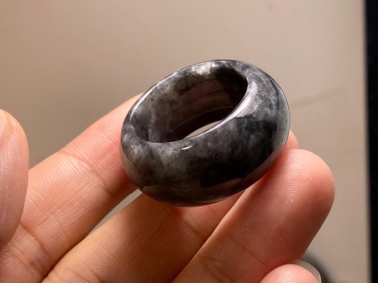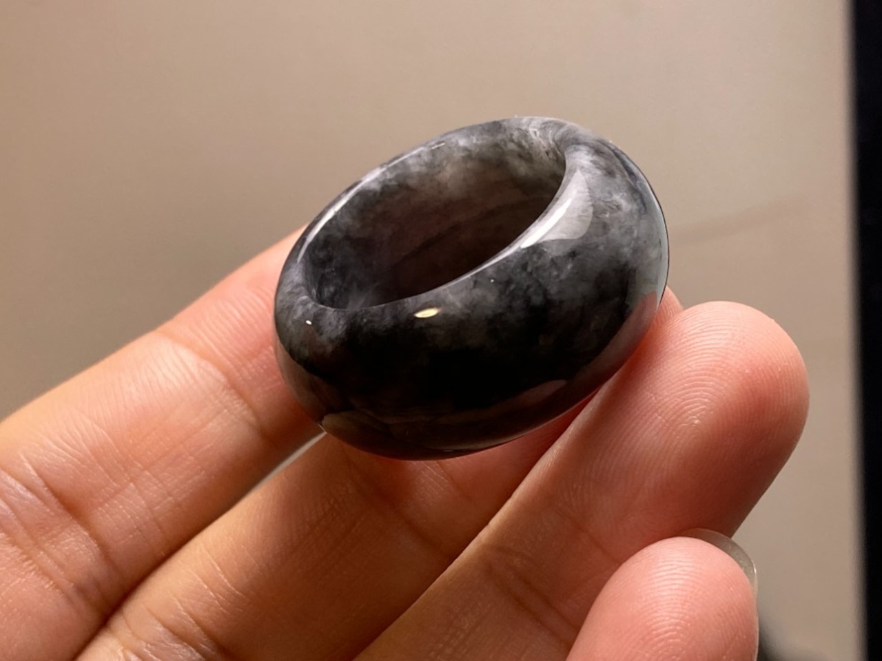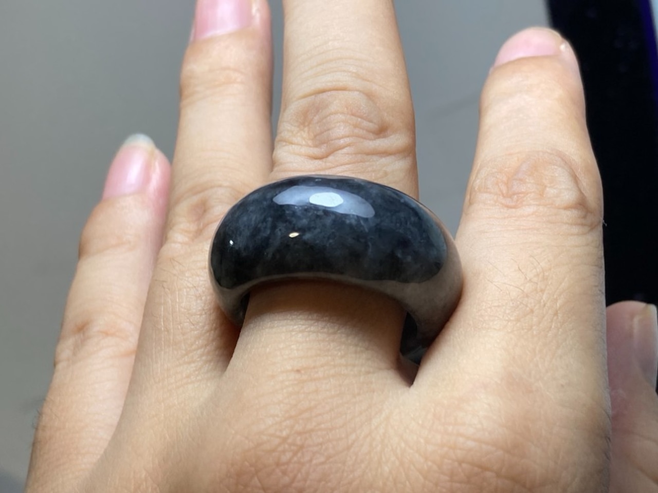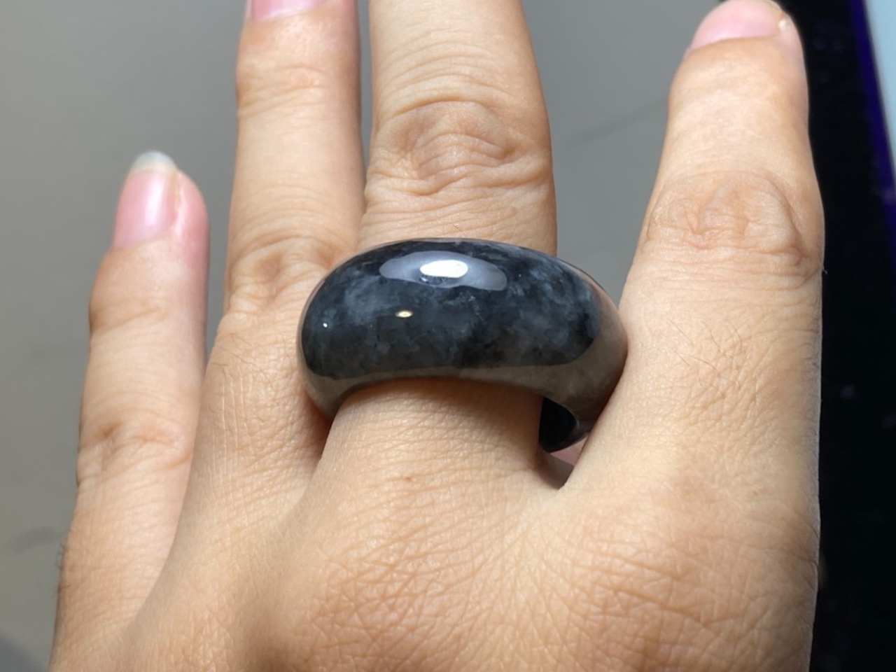 L14-93 ビッグサイズ 黒翡翠 26.0号 ミャンマー産 A貨 本翡翠 くりぬき リング
