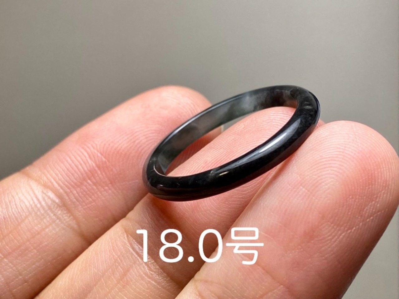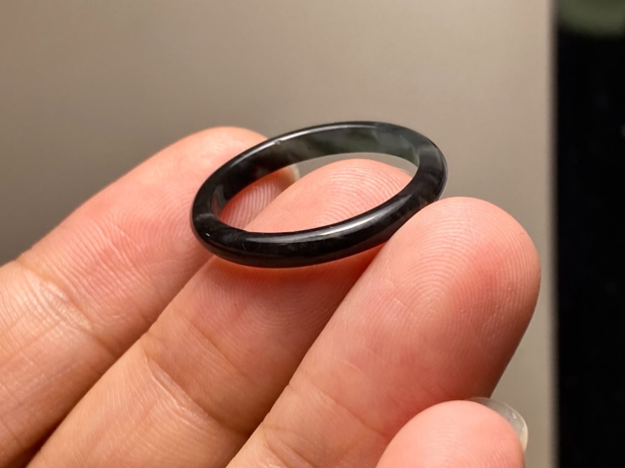 L14-96 細身 氷糯種 黒翡翠 18.0号 天然グアテマラ産 A貨 本翡翠 くりぬき リング