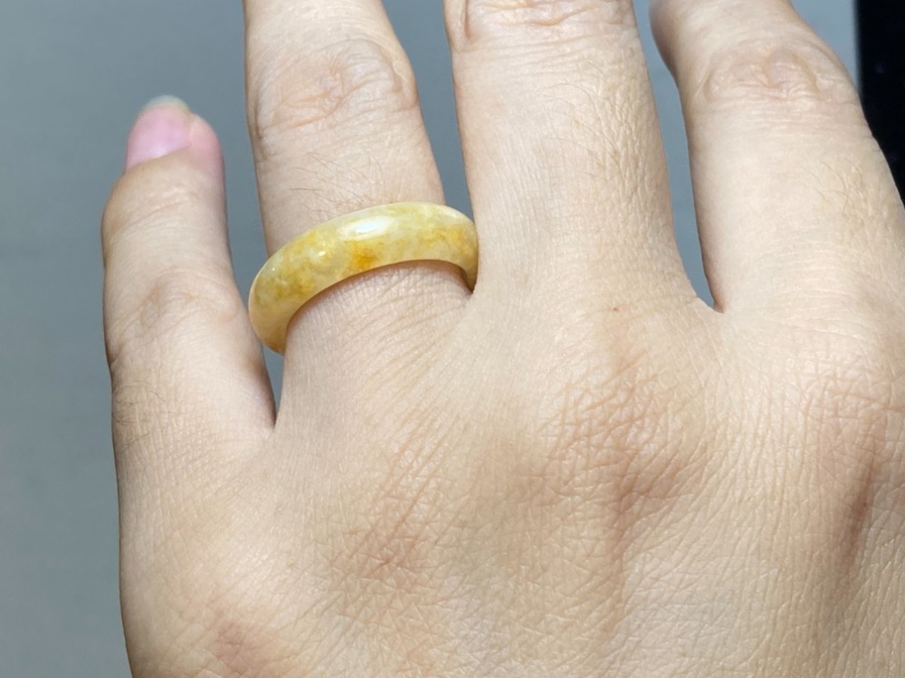 L14-94 氷糯種 黄翡翠 14.0号 ミャンマー産天然 A貨 本翡翠 くりぬき リング