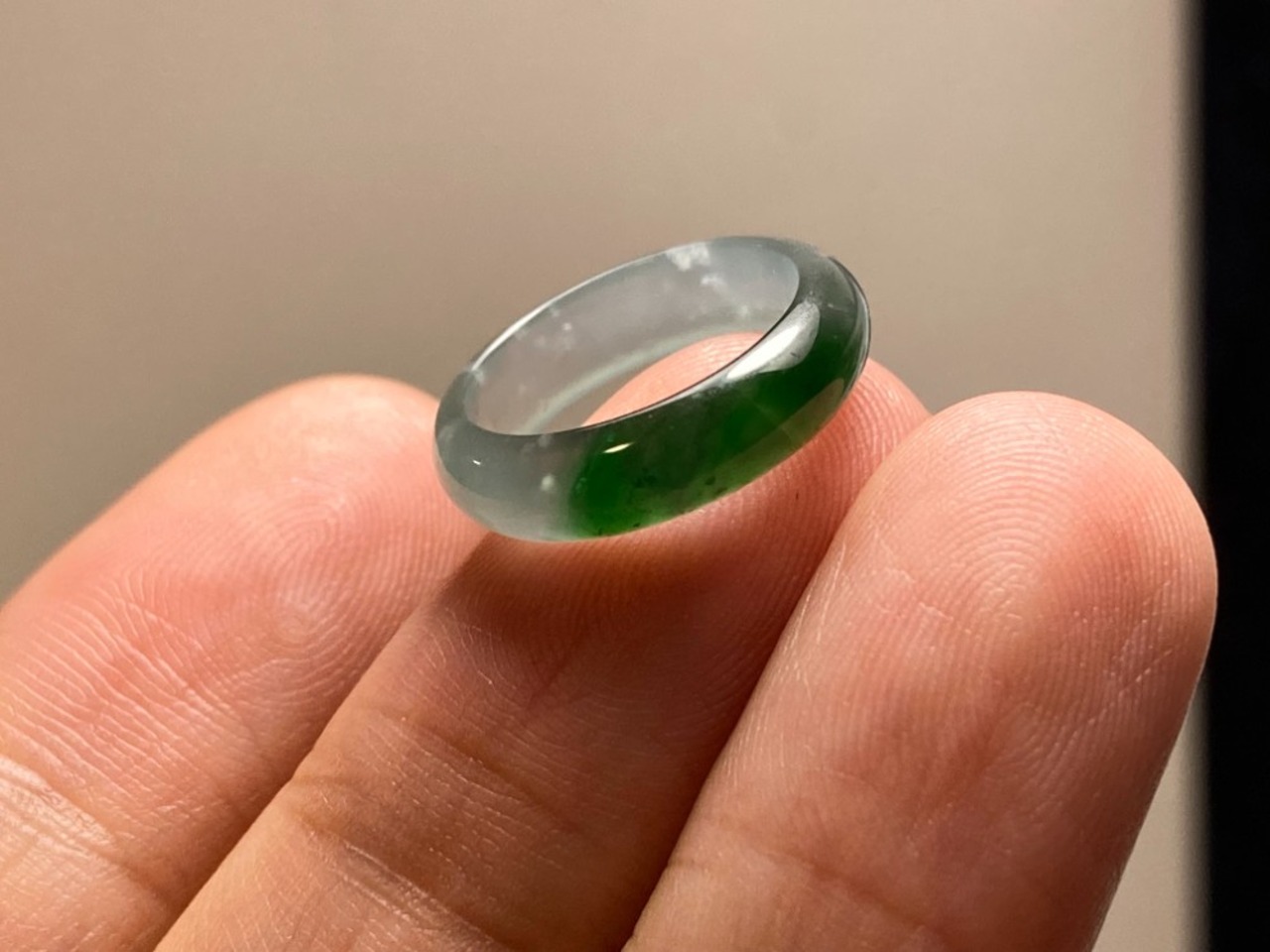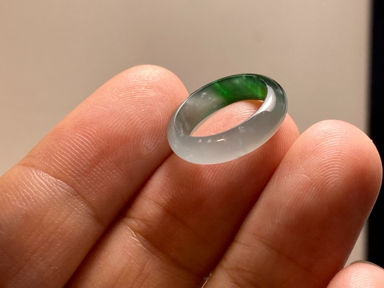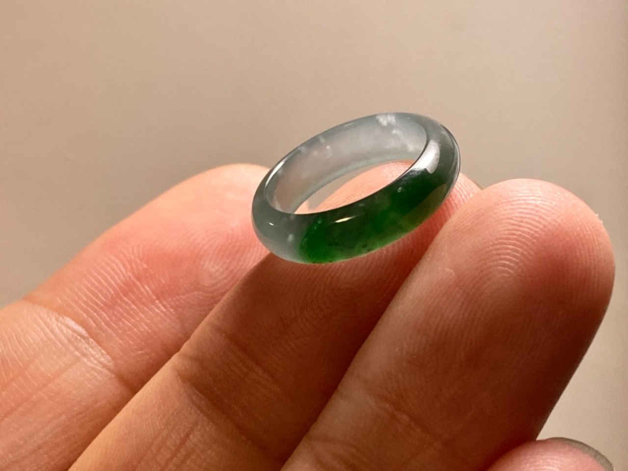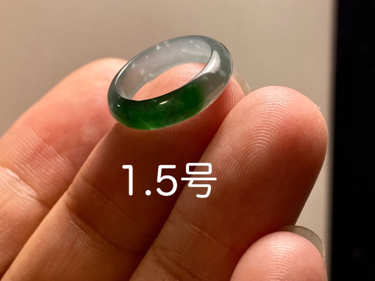 L14-100 ピンキーリング 氷種 青白深緑 1.5号 グアテマラ産 A貨 本翡翠 くりぬき