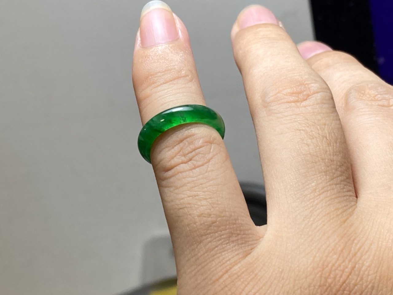 L14-99 極品 ピンキーリング 高氷種 陽緑 1.5号 グアテマラ産 A貨 本翡翠 くりぬき