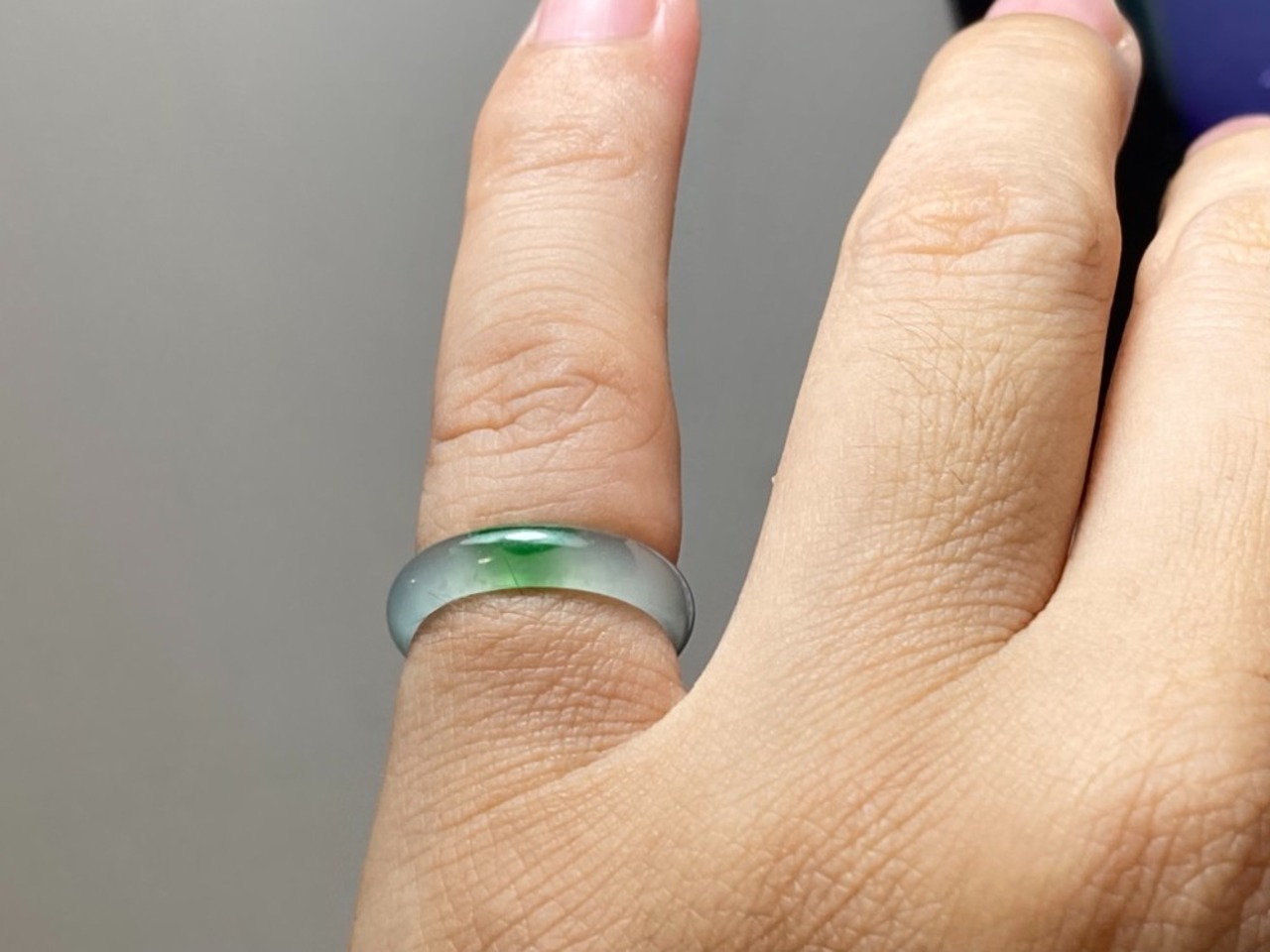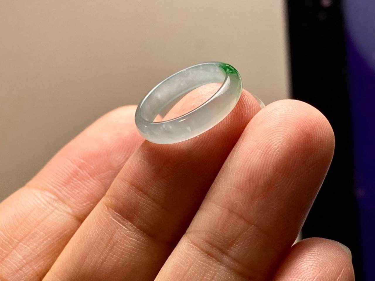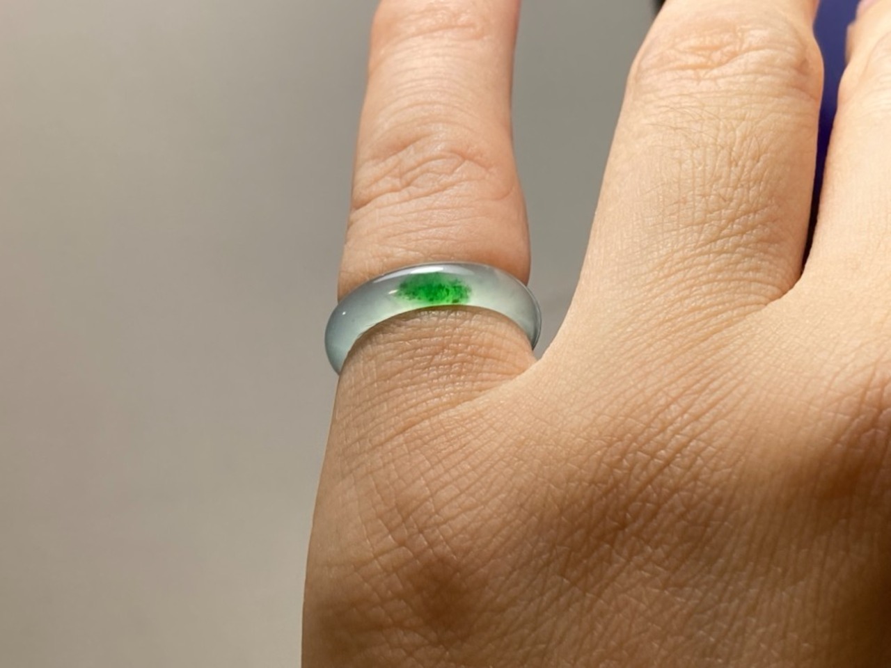 L14-98 ピンキーリング 氷種 白青陽緑 4.5号 グアテマラ産 A貨 本翡翠 くりぬき