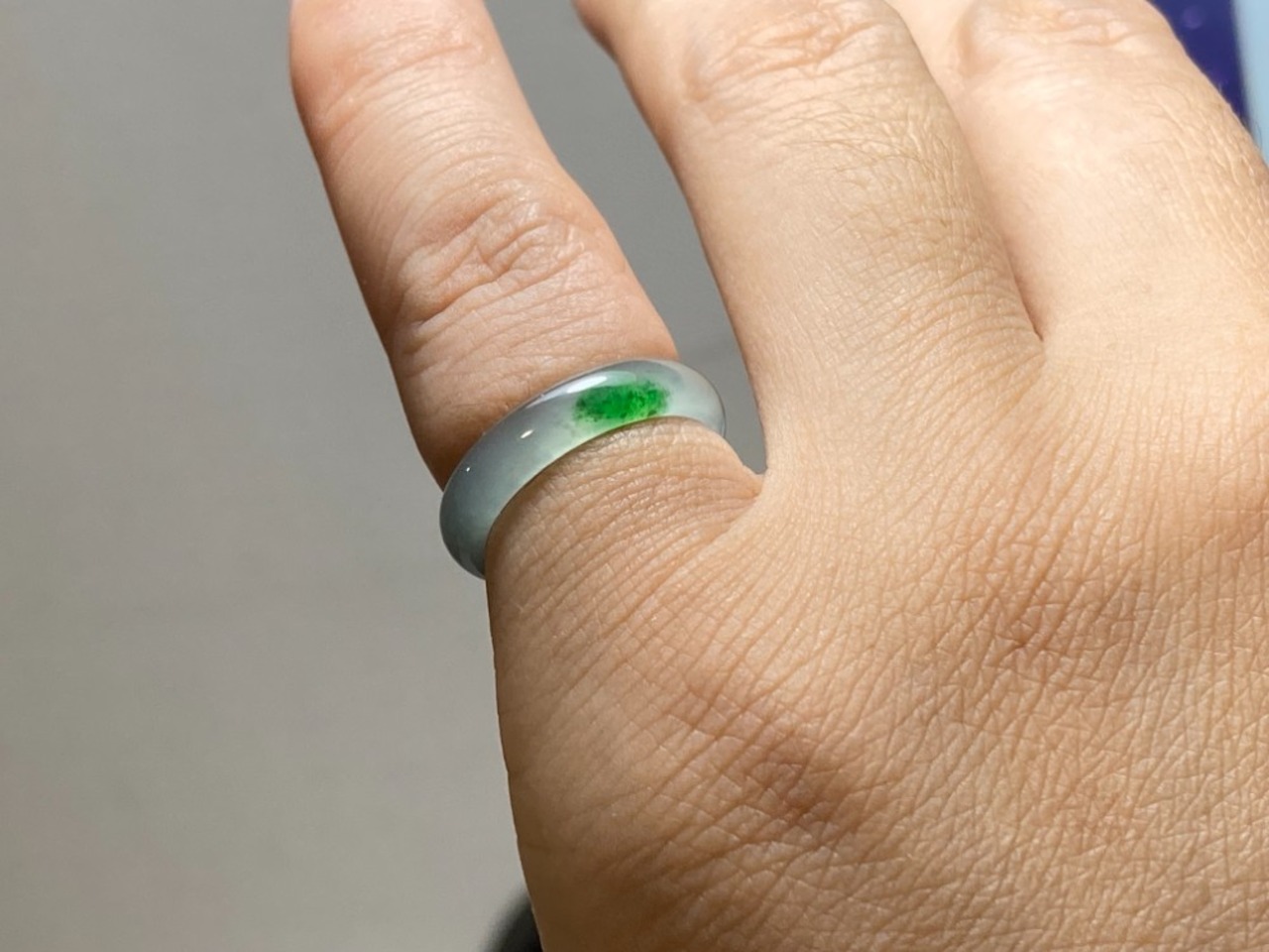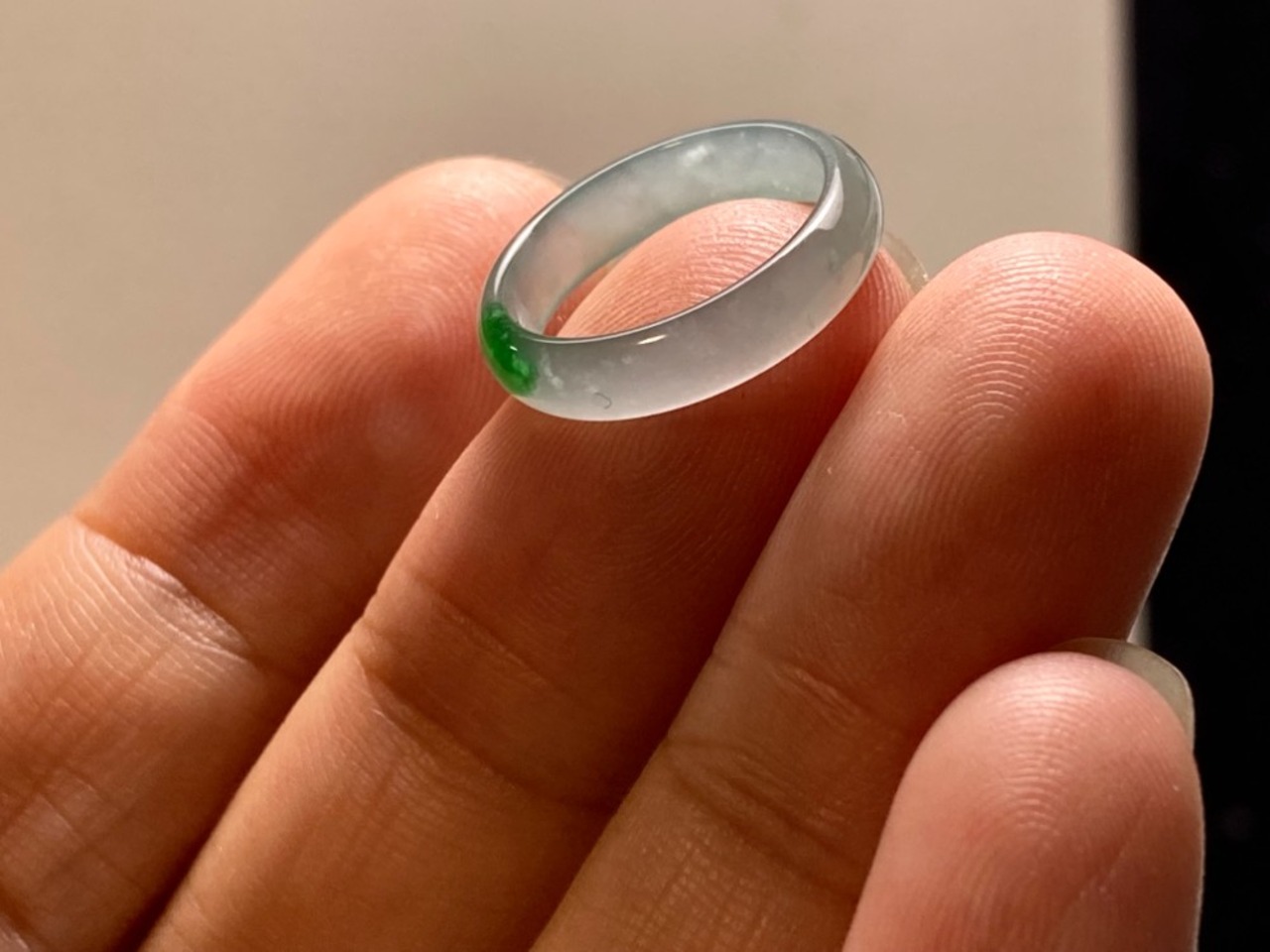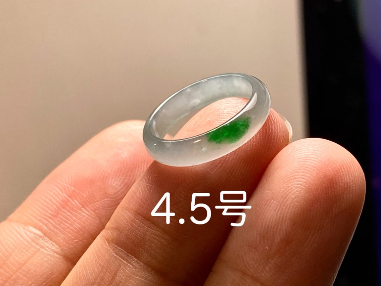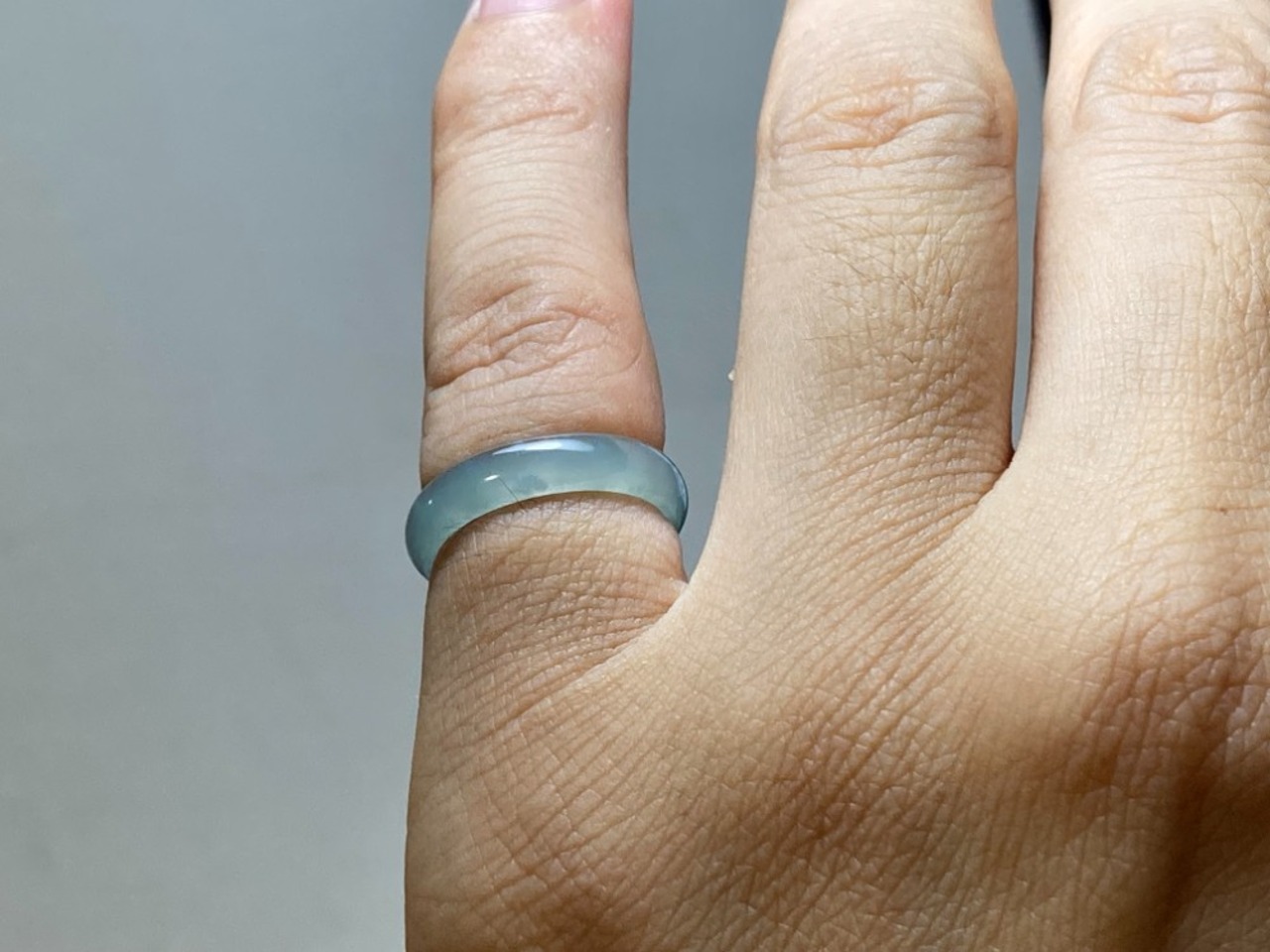 L14-98 ピンキーリング 氷種 白青陽緑 4.5号 グアテマラ産 A貨 本翡翠 くりぬき