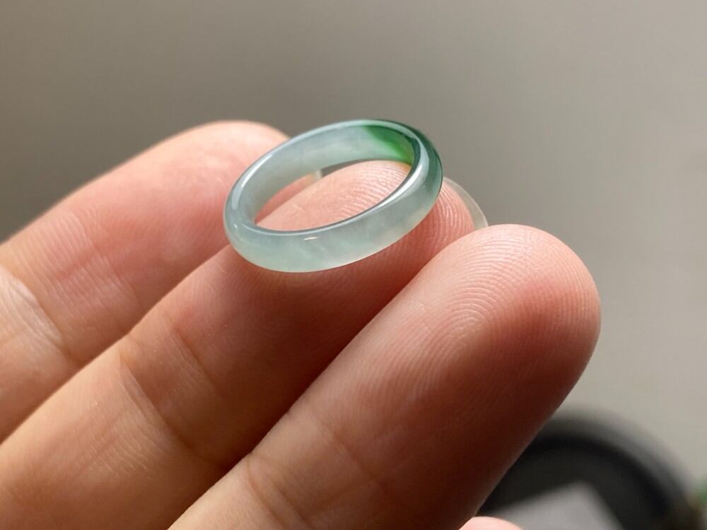 L14-105 ピンキーリング 氷種 青白陽緑 1.5号 グアテマラ産 A貨 本翡翠 くりぬき