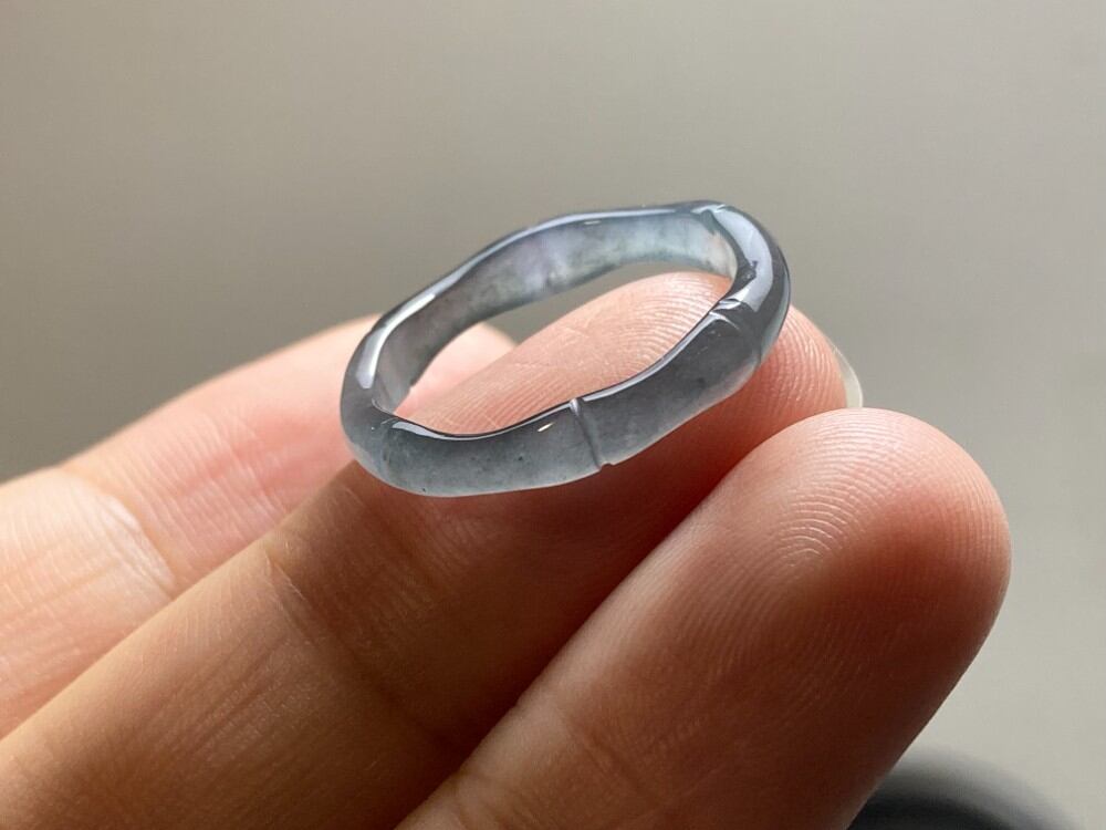 L14-109 氷種 竹節 リング 高級感 薄煙灰色 15.0号 グアテマラ産 A貨 本翡翠 くりぬき 黒翡翠