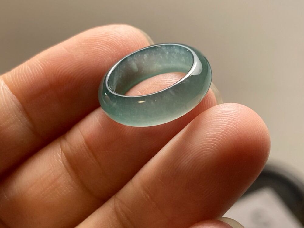 L14-108 ピンキーリング 氷種 氷青緑 4.5号 グアテマラ産 A貨 本翡翠 くりぬき リング