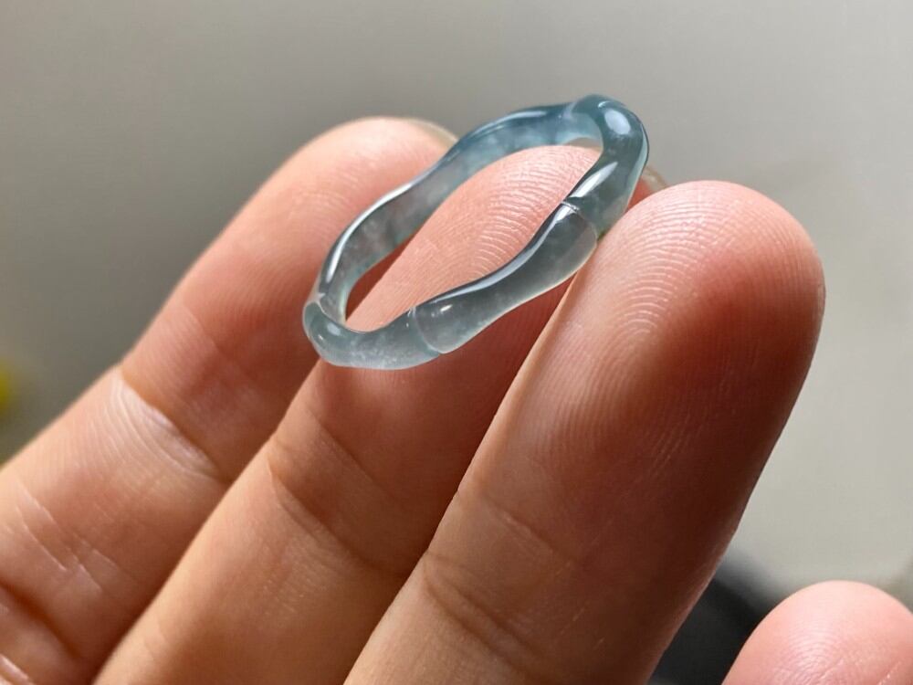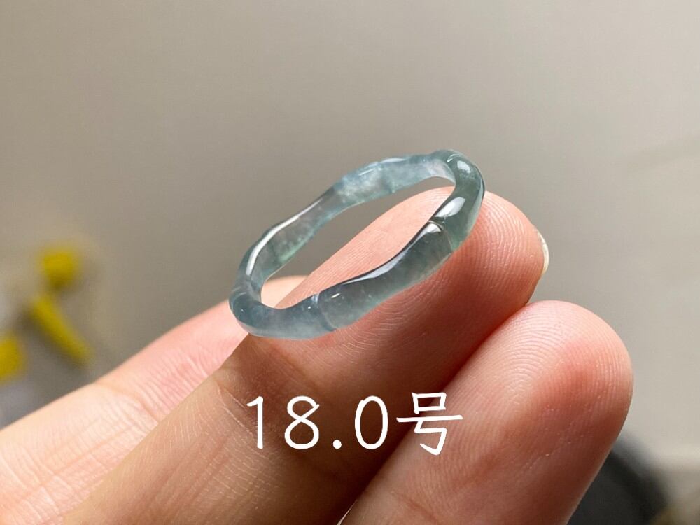 L14-137 高氷種 竹節 リング 高級感 氷灰青 18.0号 グアテマラ産 A貨 本翡翠 くりぬき 黒翡翠