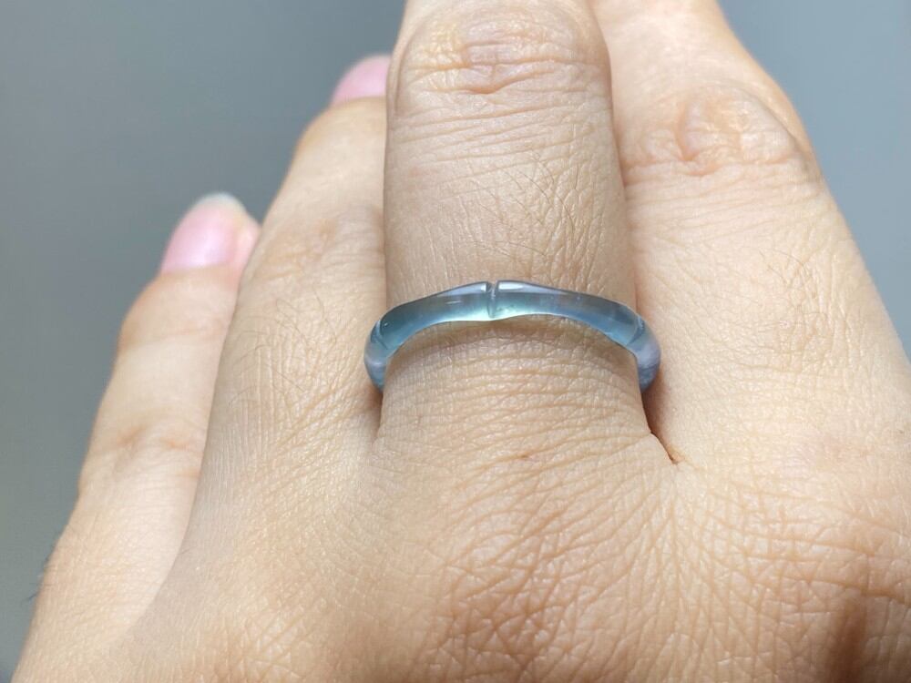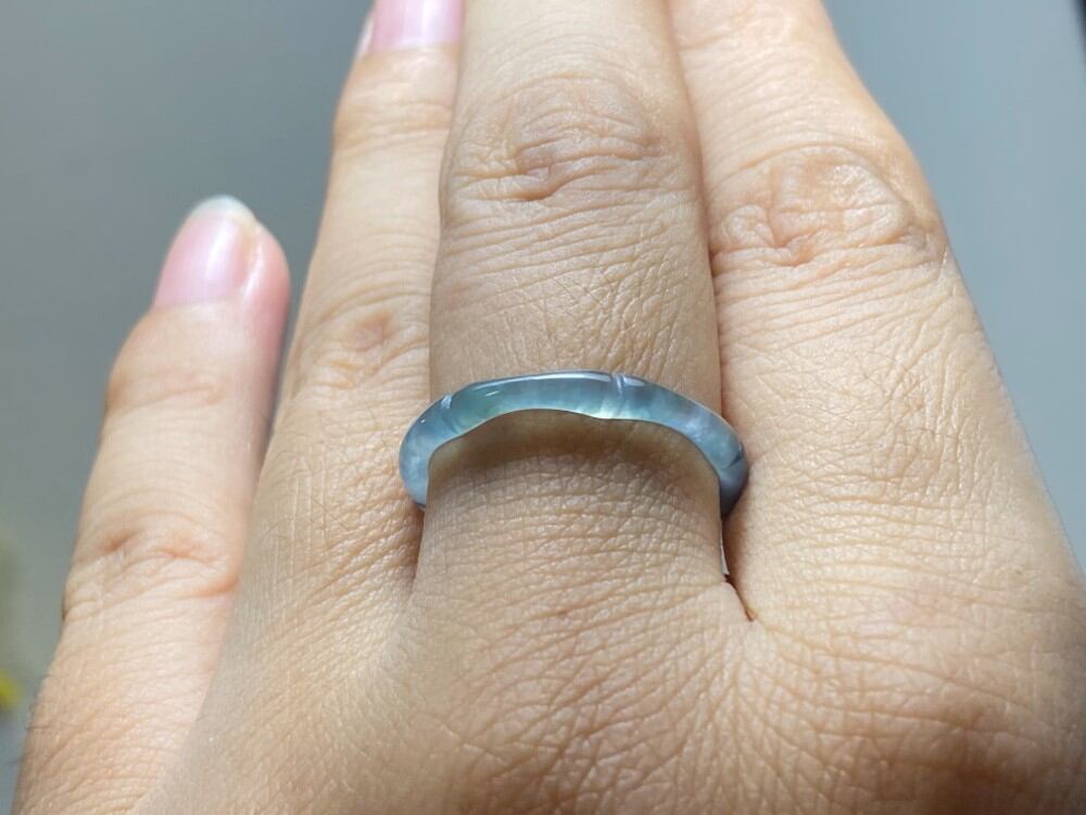 L14-136 高氷種 竹節 リング 高級感 薄水色 18.0号 グアテマラ産 A貨 本翡翠 くりぬき 黒翡翠