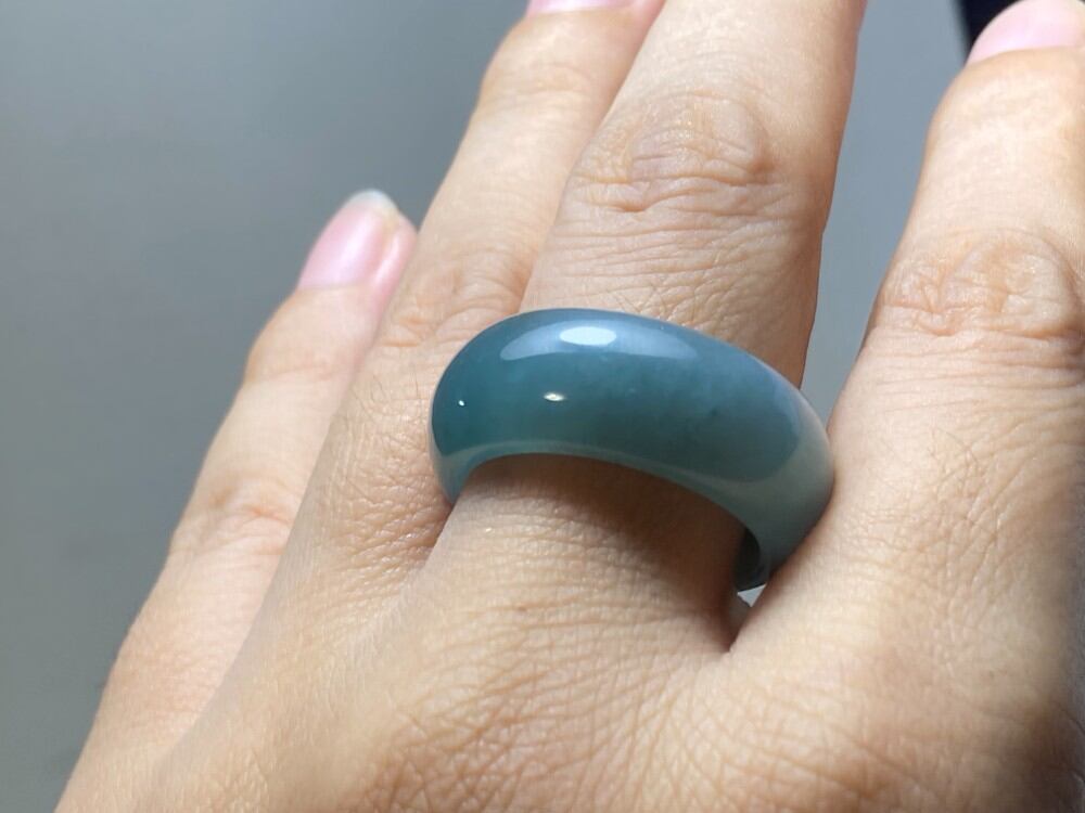 L14-145 広幅 氷糯種 灰青 21.5号 グアテマラ産 A貨 本翡翠 くりぬき