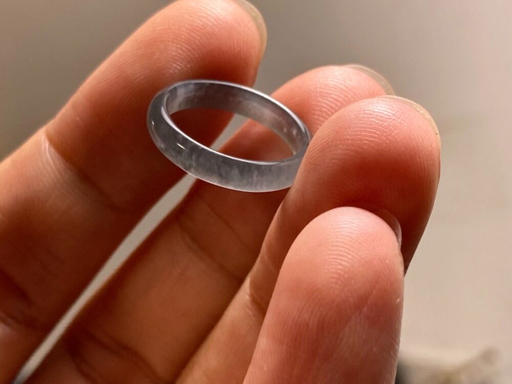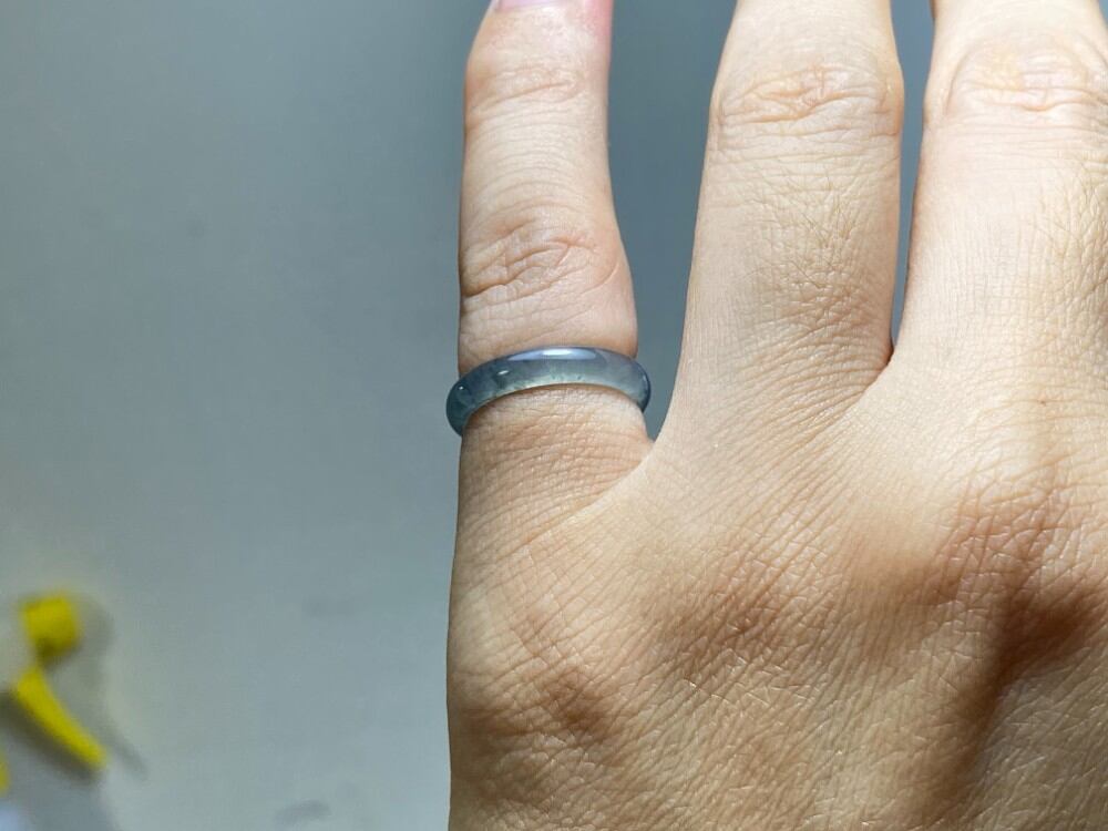 L14-140 ピンキーリング 黒翡翠 薄煙灰 4.0号 グアテマラ産 A貨 本翡翠 くりぬき