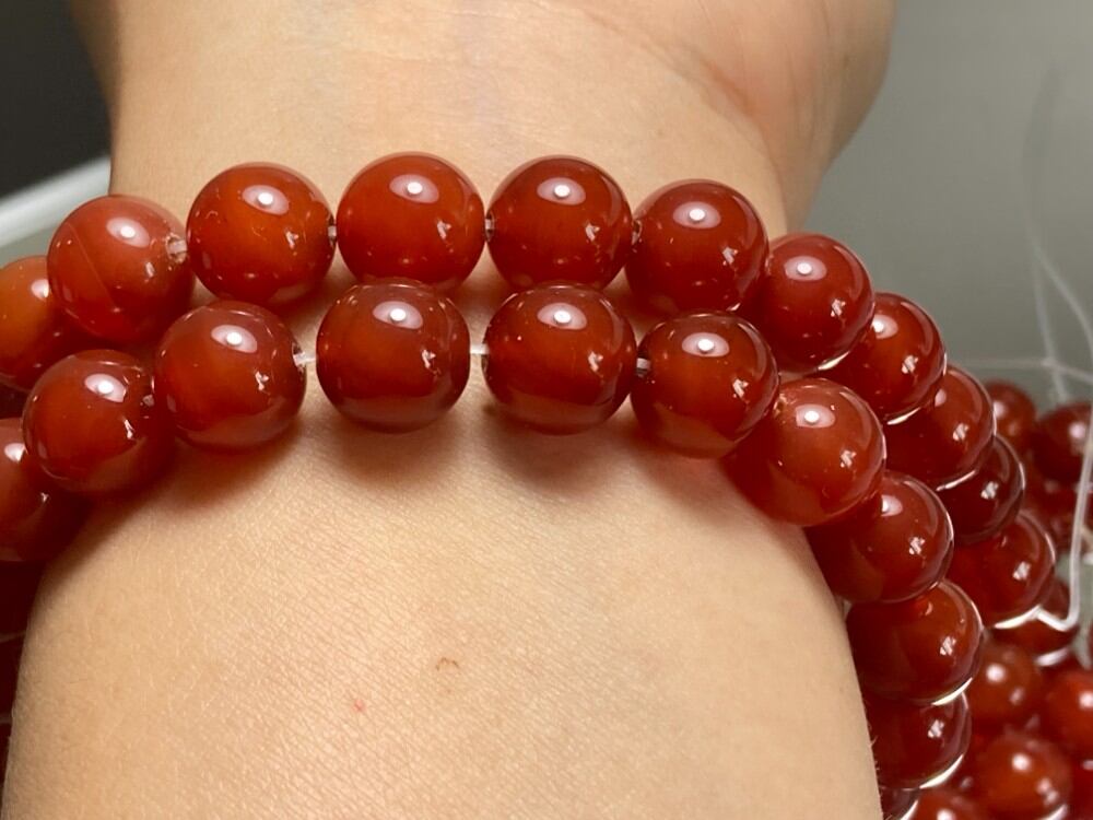 深みのある赤色が美しい、天然メノウ(瑪瑙)のビーズです。