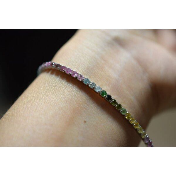 ★新品★ 93-8 上品 シルバー 2.5mm 丸 天然 トルマリン ブレスレット 黄色 茶色 ピンク ブルー パライバ 電気石 ブレスレット お正月[YC:25047449]