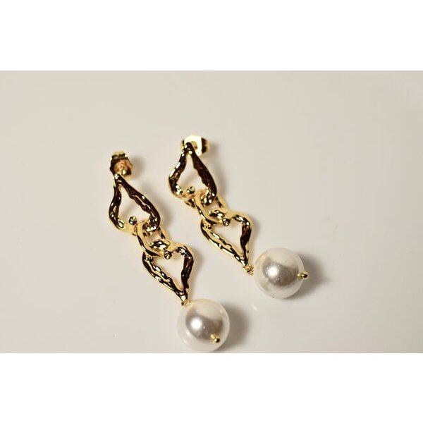 09 ★新品★18kgp ハットピアス パール ゆらゆらピアス フランス風 金属アレルギー対応 お祝い 成人式 母の日 in[YC:27421632]