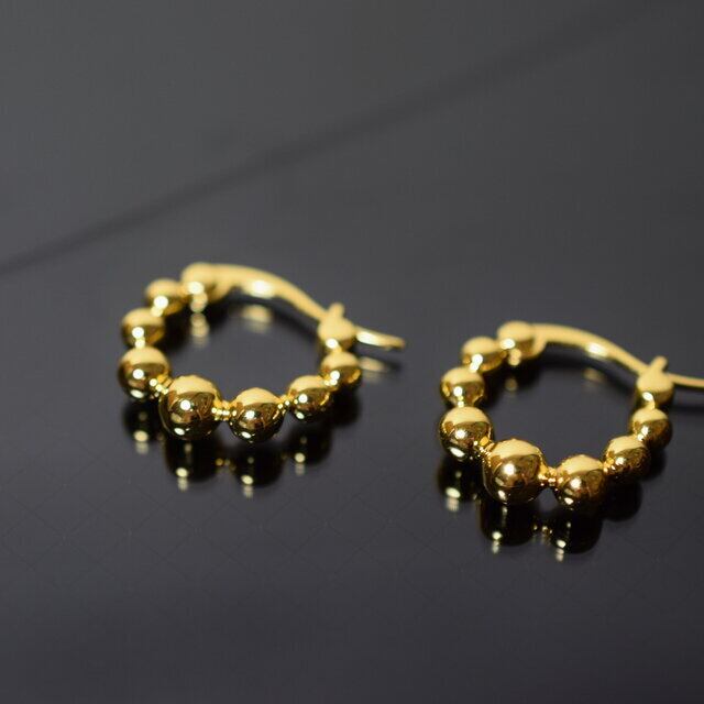 18 上品 丸玉 フープピアス ワンタッチ 18kgp ピアス 金属アレルギー 18k金メッキ プレゼント お正月 お祝い お誕生日 ins風 シンプル