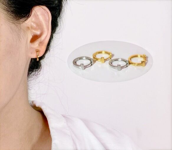7003 上品フープピアス シンプル ミニ フープピアス シルバーカラー ゴールドカラー 金属アレルギー対応 ワンタッチピアス 中折りピアス