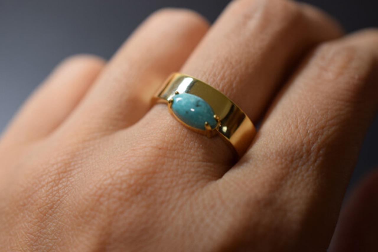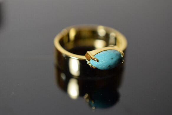 それは天然ターコイズの魅力と楽しみ、マーキースカットお形であんまり大きくなくても目を惹きます