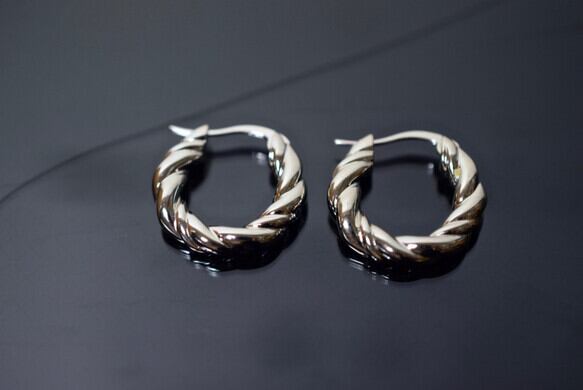 17 上品 麻紐 フープピアス ワンタッチ 18kgp ピアス 金属アレルギー 18k金メッキ 成人式