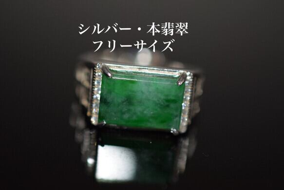 06 特売シルバー 天然 深緑 本翡翠 リング 指輪 父の日 メンズ 誕生日 フリーサイズ 息子 正月 彼氏 プレゼント
