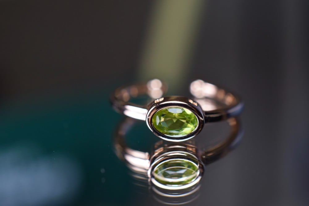RG04 天然 細工製作 宝石質 天然 碧の宝石 ペリドット 太陽の石 覆輪留 リング 指輪 ピンクゴールド フリーサイズ 18KGP 金属アレルギー対応 プレゼント お祝い