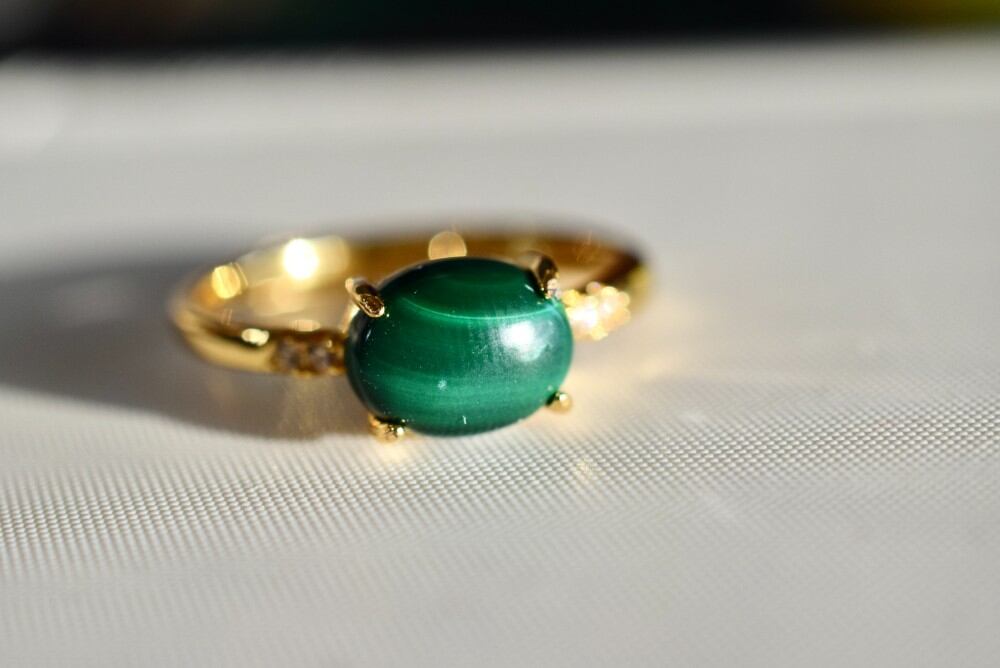RG06 天然 マラカイト 孔雀石 4つ爪留 リング 指輪 ホワイトゴールド シルバーカラー ピンクゴールド イエローゴールド フリーサイズ 18KGP 金属アレルギー対応 プレゼント お祝い