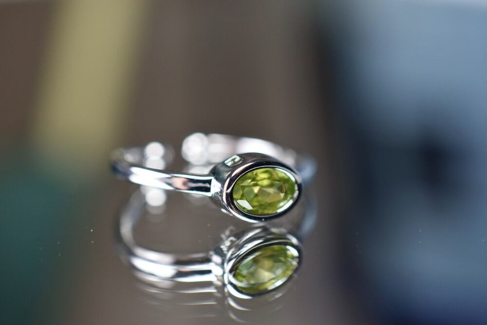 RG04 天然 細工製作 宝石質 天然 碧の宝石 ペリドット 太陽の石 覆輪留 リング 指輪 ホワイトゴールド シルバーカラー フリーサイズ 18KGP 金属アレルギー対応 プレゼント お祝い