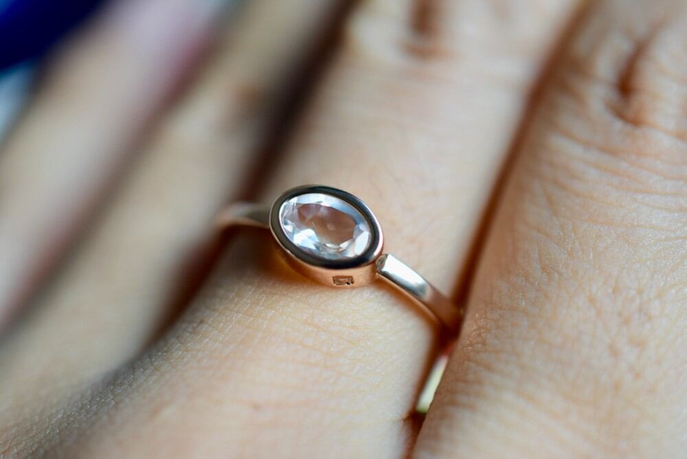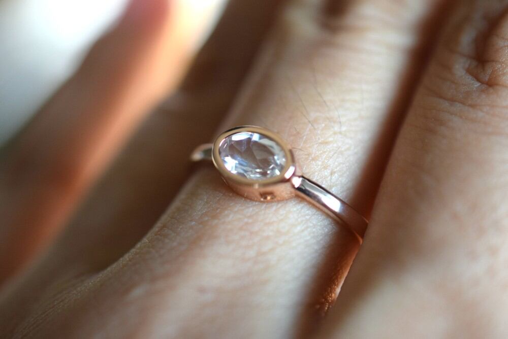 RG03 天然 AAAA 宝石質 白トパーズ topaz リング 覆輪留め 指輪 ピンクゴールド フリーサイズ 18KGP 金属アレルギー対応 プレゼント お祝い