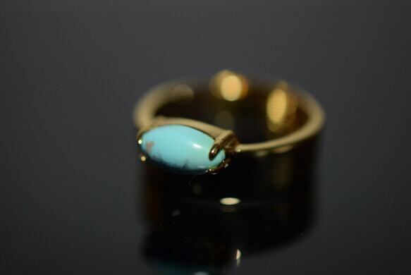 それは天然ターコイズの魅力と楽しみ、マーキースカットお形であんまり大きくなくても目を惹きます