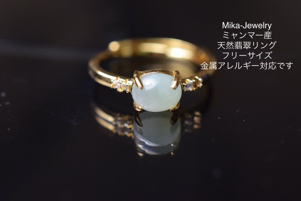 RG14 ミャンマー産 天然 A貨 本翡翠 リング 指輪 シンプル ピンクゴールド フリーサイズ 18KGP 金属アレルギー対応