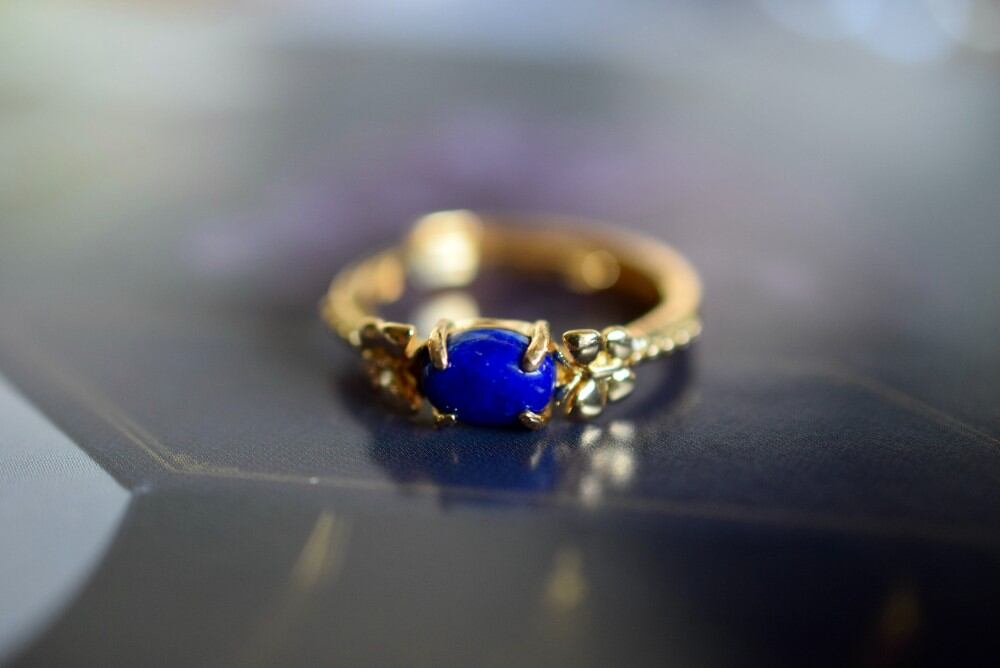 RG08 天然 青金石 ラピスラズリ 4つ爪留 リング 指輪 ホワイトゴールド シルバーカラー ピンクゴールド イエローゴールド フリーサイズ 18KGP 金属アレルギー対応 プレゼント お祝い