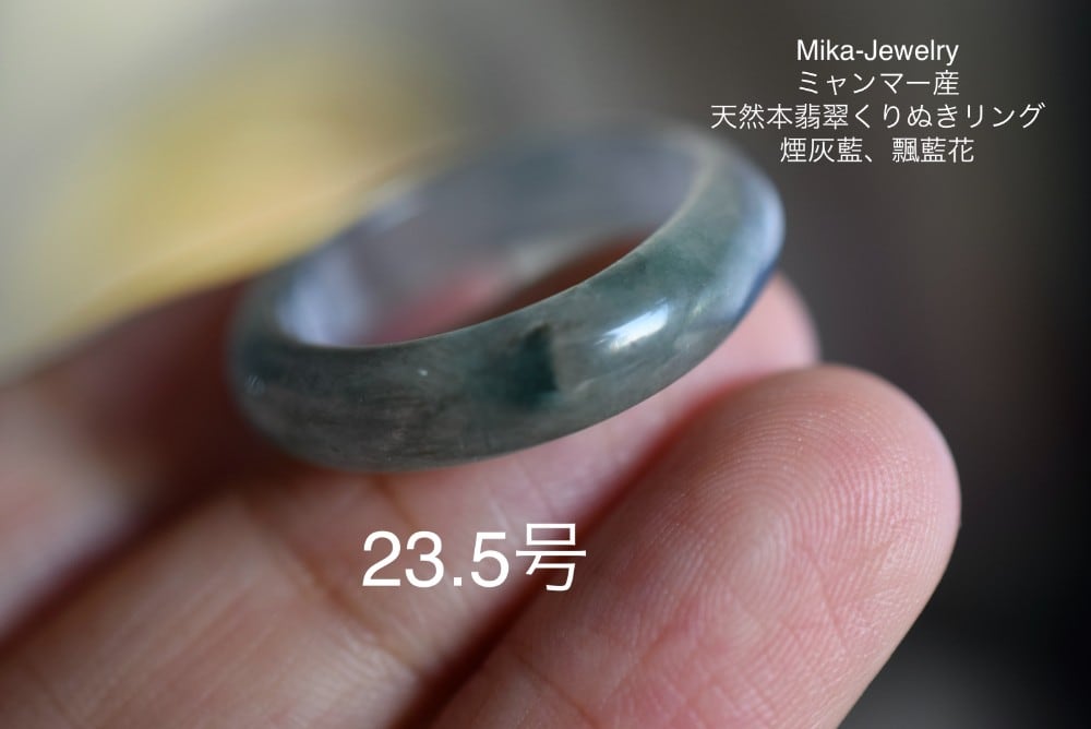 Mika-Jewelry-HS52 美品 23.5号 ミャンマー産 天然 煙灰藍 飄藍花 本翡翠 リング 指輪 硬玉 くりぬき