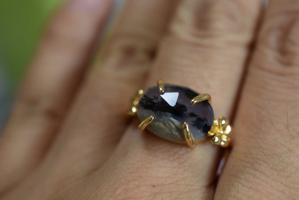 RG23-29 宝石質 半貴石 大粒 天然 ペルーオパール ローズカット 蝶々 リング フリーサイズ 金属アレルギー対応