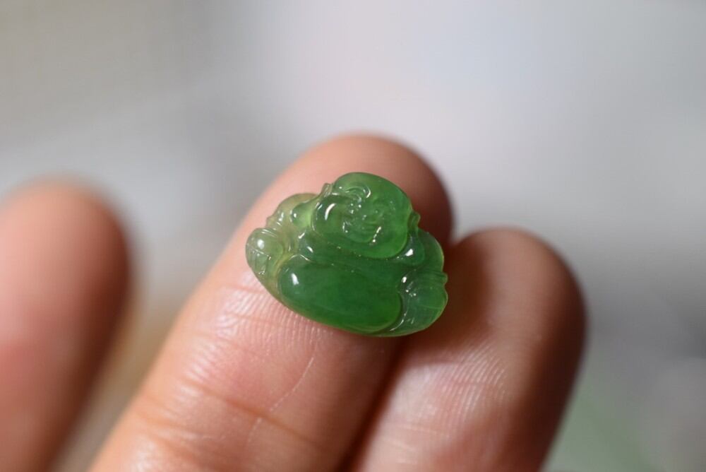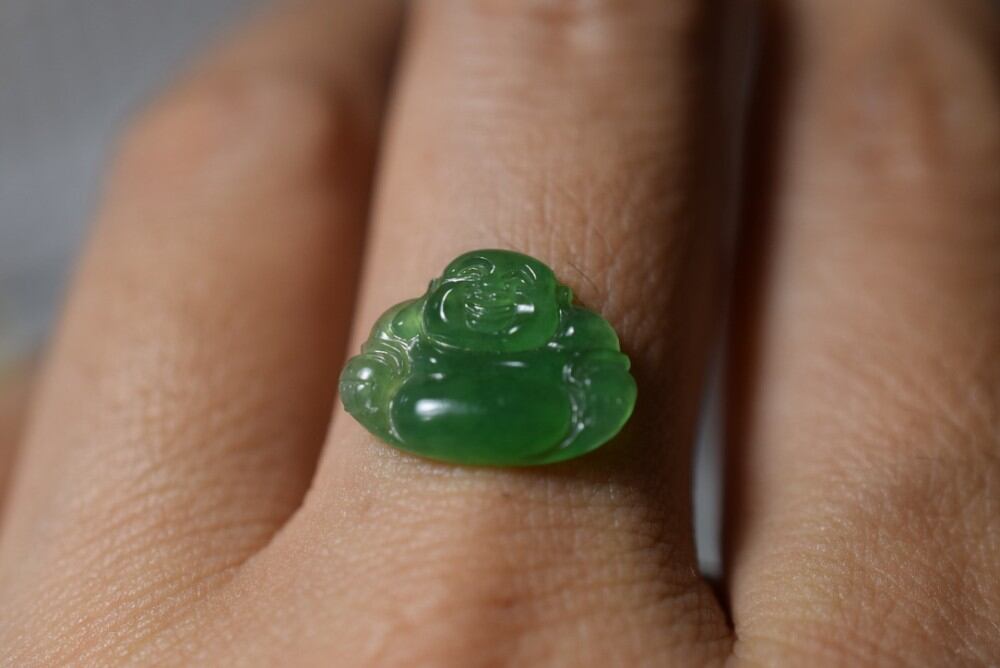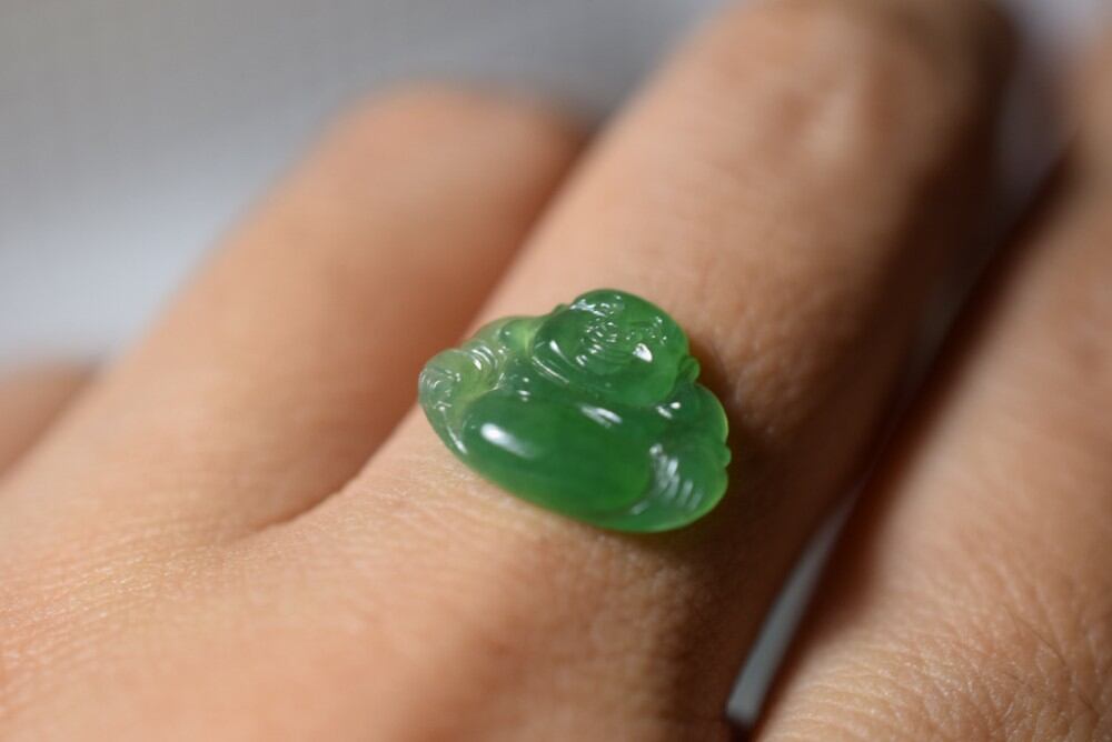 Mika-Jewelry HSYR72 美品 ミャンマー産 天然 A貨 氷種 辣陽緑 本翡翠 みろくぼさつ ルース 裸石 硬玉 ジェダイト リング ネックレス