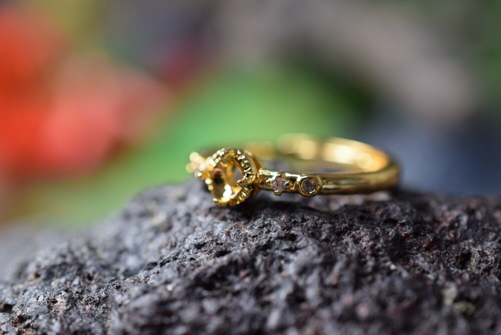 R06 イエローゴールド 台座 上品 ミニリング枠 ルース 指輪 空枠 石枠 フリーサイズ 金属アレルギー対応