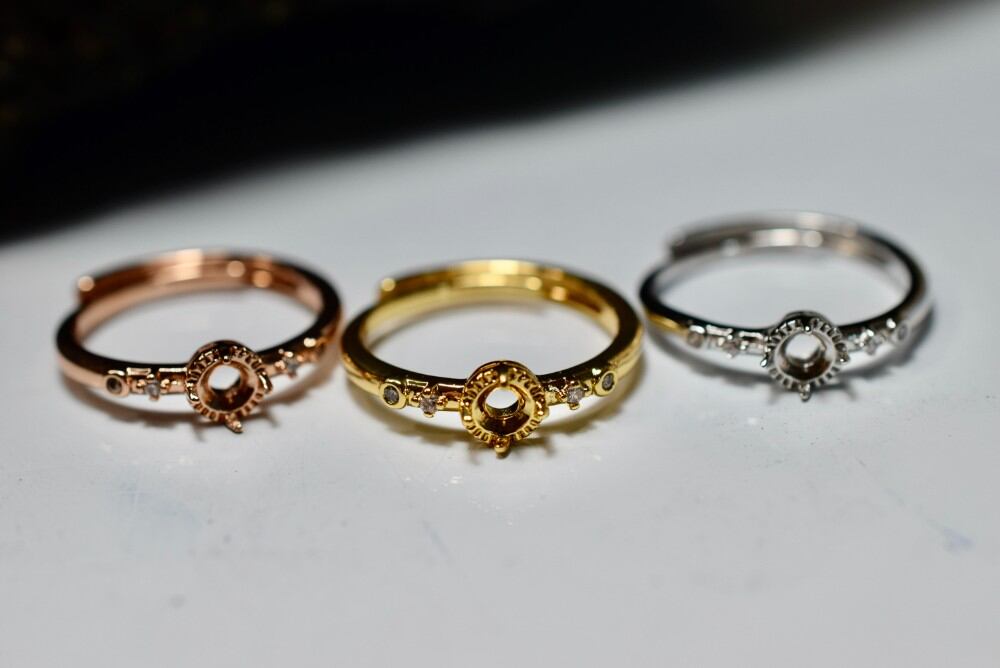 R06 上品 ピンクゴールド 台座 ミニリング枠 ルース 指輪 空枠 石枠 フリーサイズ 金属アレルギー対応