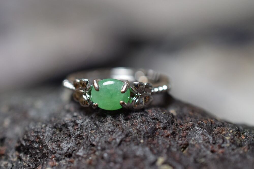 RG23-3 上品 天然 本翡翠 ミャンマー産 氷種 リング 指輪 シンプル フリーサイズ 18KGP 金属アレルギー対応