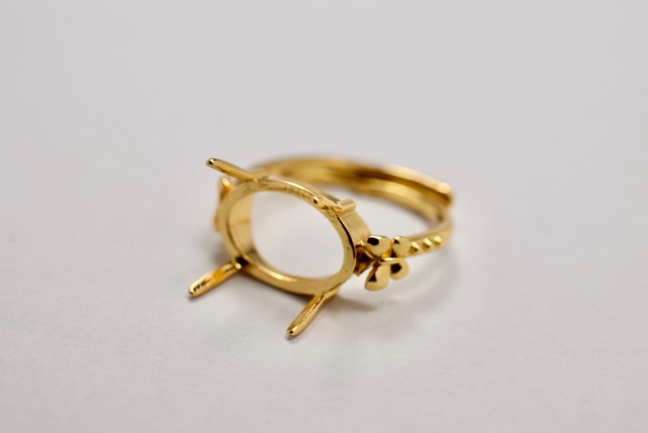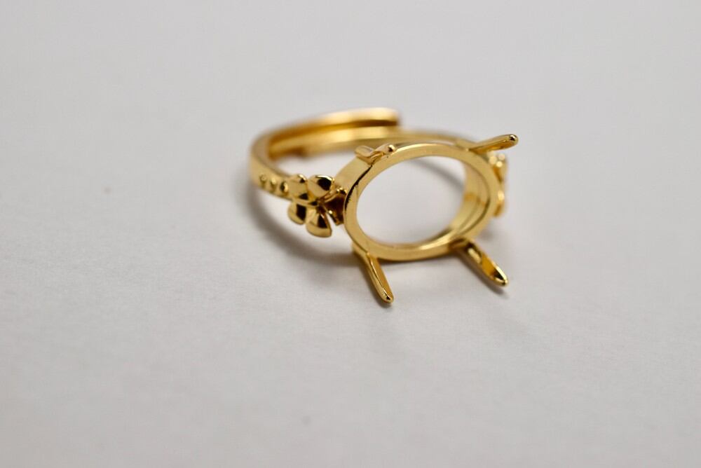 台座 リング枠 石空枠 空枠 蝶々リング 枠 指輪 イエローゴールド フリーサイズ 金属アレルギー対応