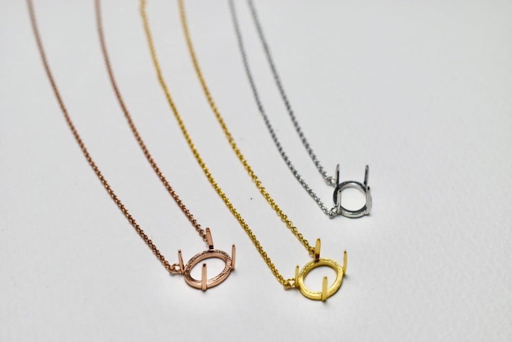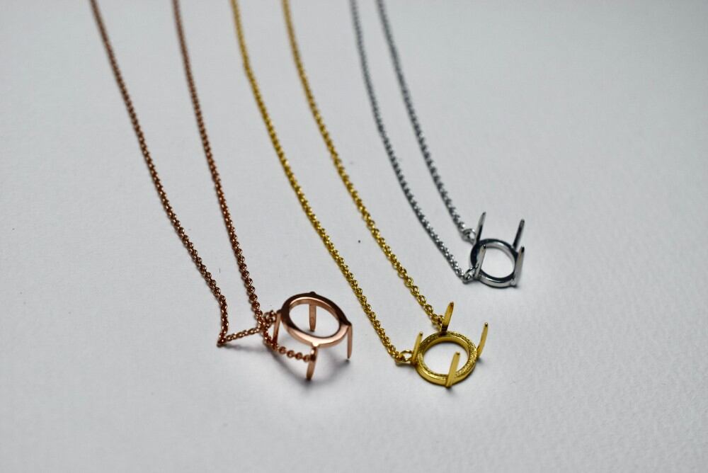 R15 上品 空枠 台座 石枠 横置き 爪留め 金属アレルギー対応 ネックレス ペンダント ルース 裸石 天然石