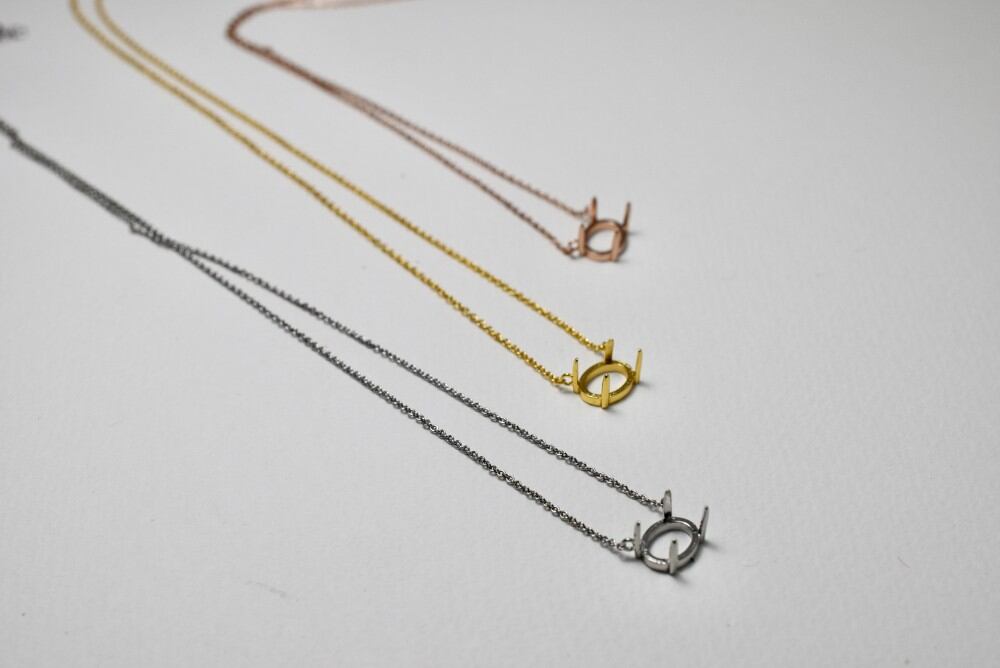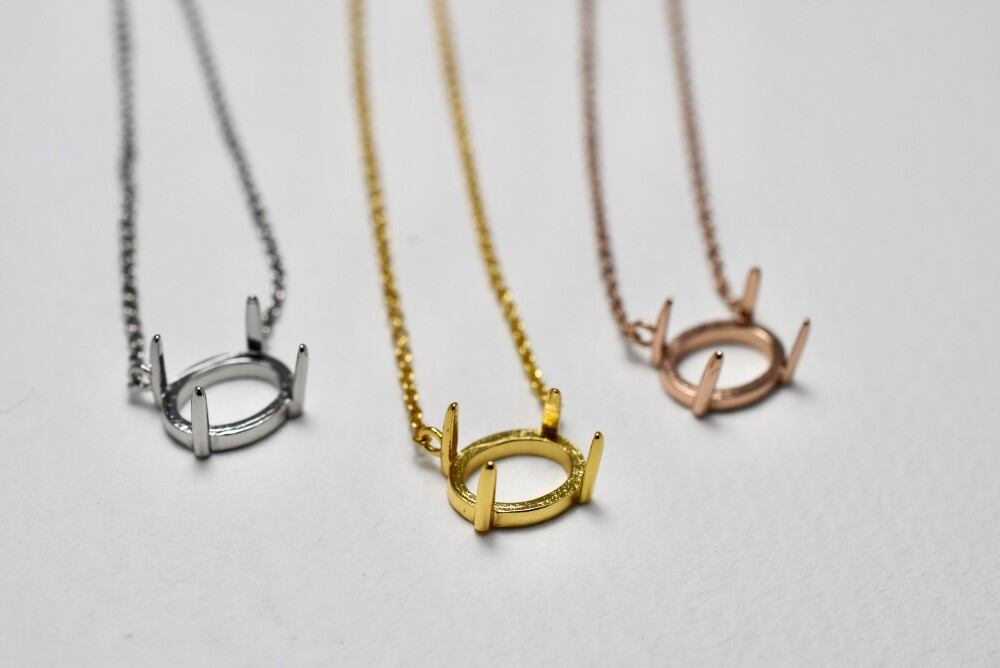 N04 上品 空枠 台座 ネックレス ペンダント ルース 裸石 天然石 石枠 横置き 爪留め 金属アレルギー対応
