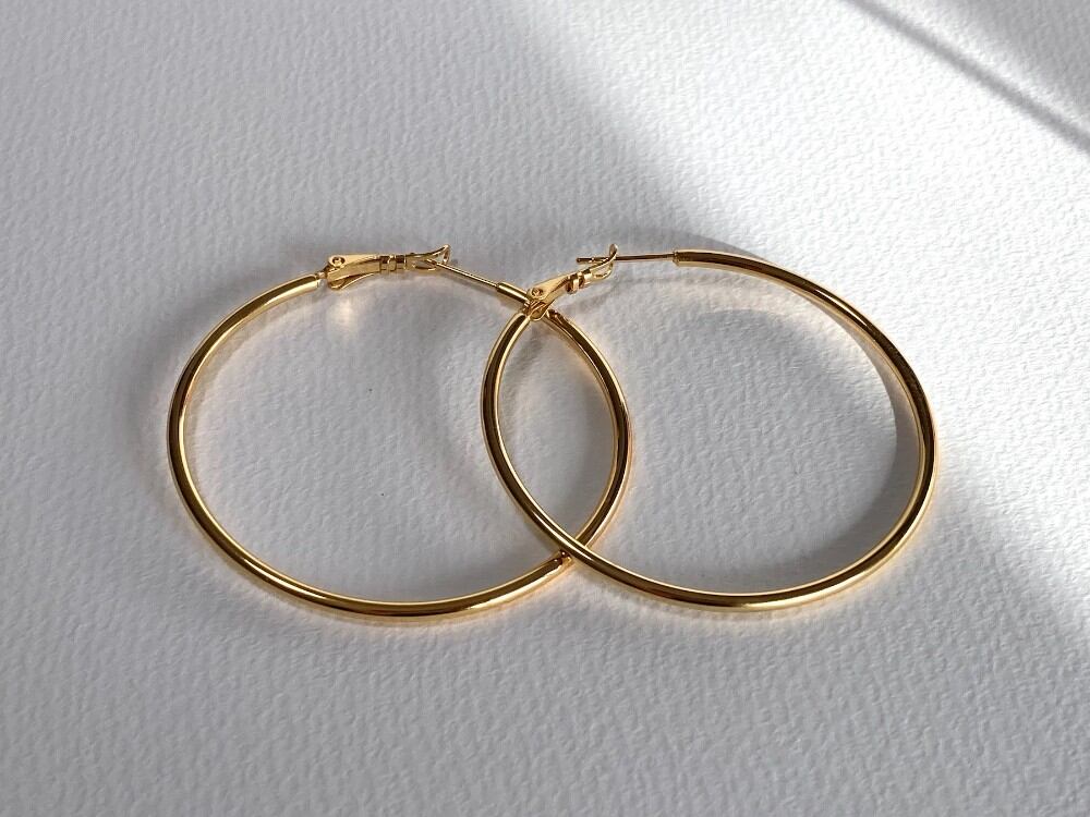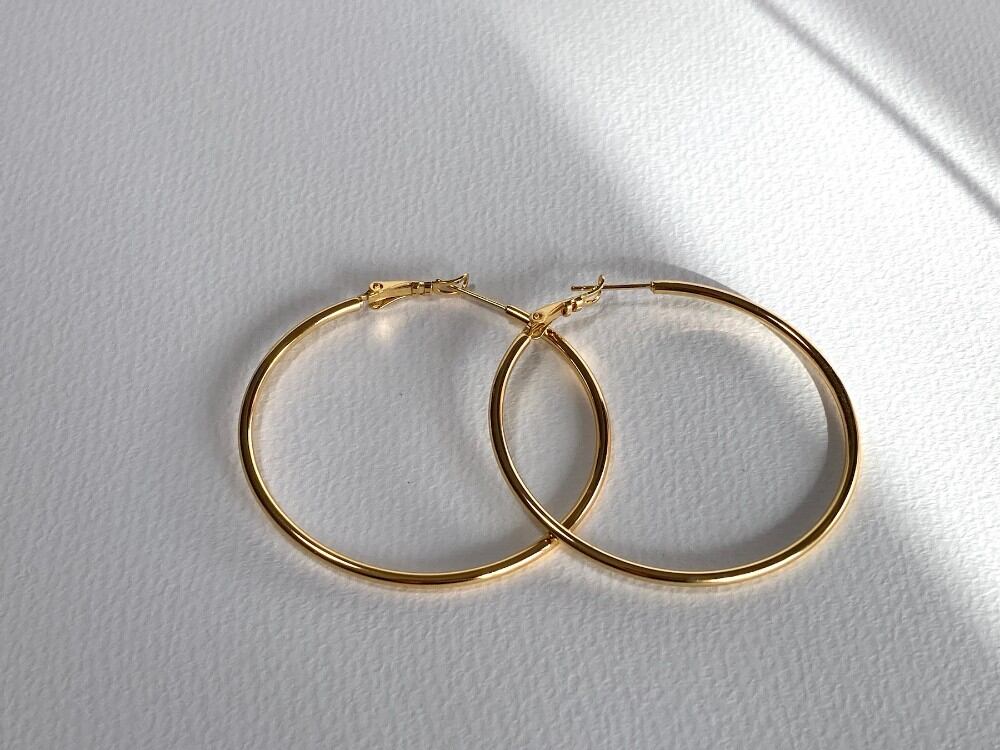 7006 上品 フープピアス 50mm シンプル フープピアス ビッグサイズ 金属アレルギー対応