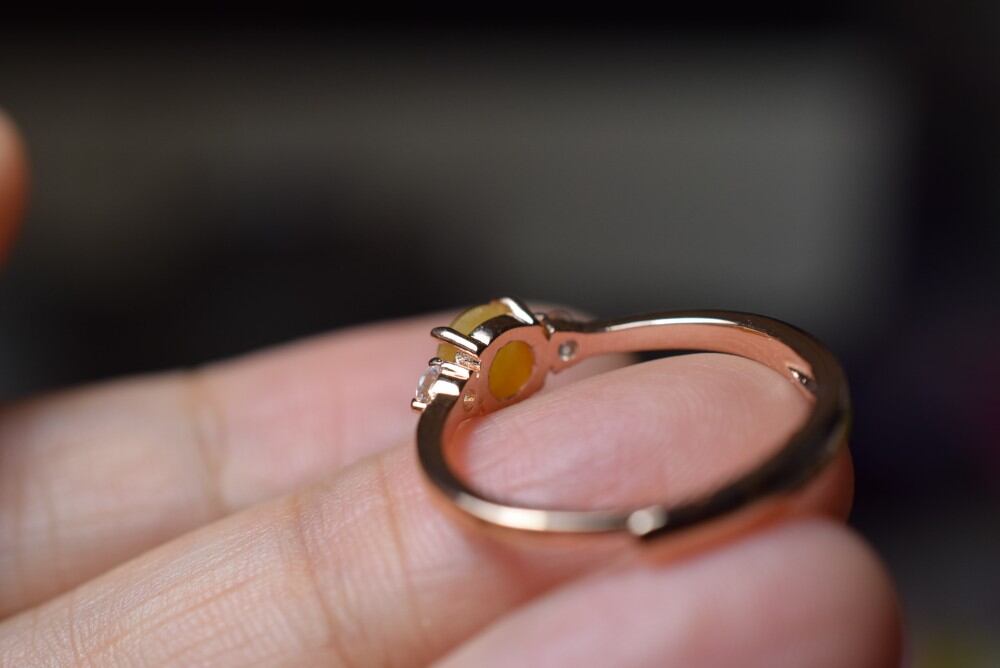 RG23-143 天然ミャンマー産 黄翡翠 本翡翠 指輪 シンプル リング フリーサイズ 金属アレルギー対応