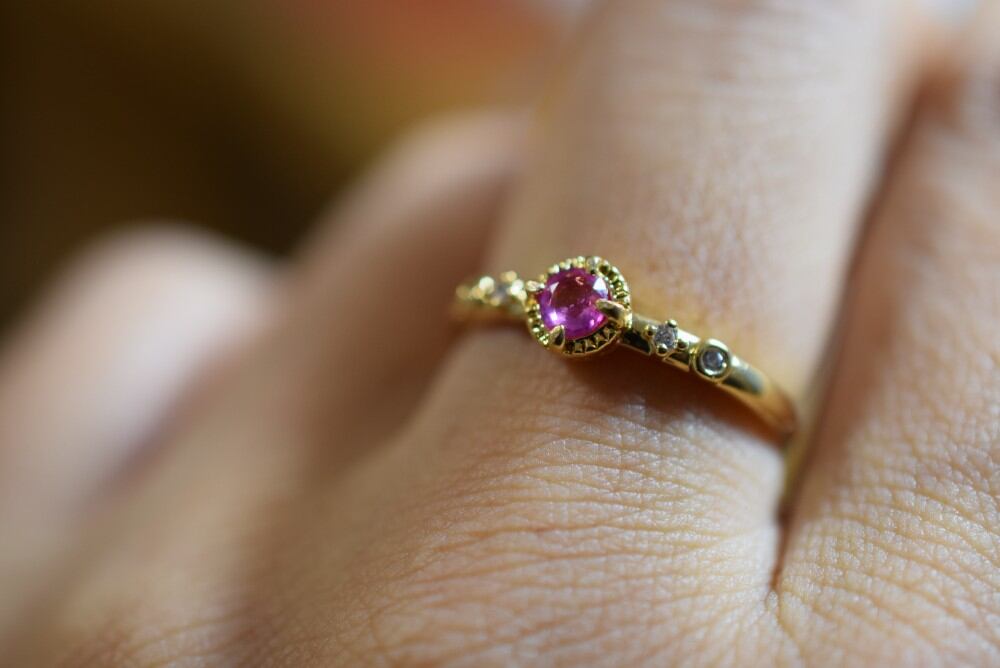 RG23-145 天然 ピンク サファイア リング 指輪 シンプル フリーサイズ 18KGP 金属アレルギー対応