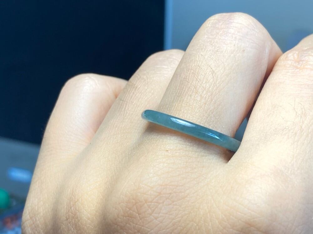 天然グアテマラ産 藍水 A貨 本翡翠 くりぬき リング