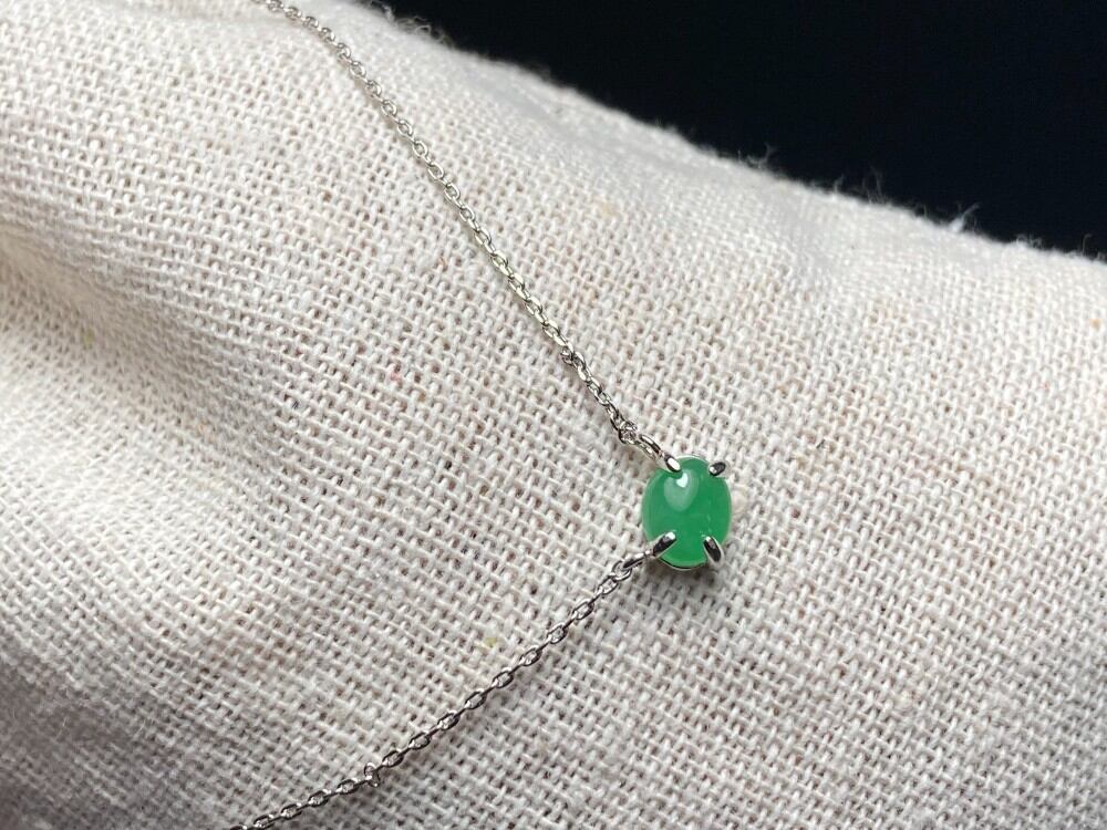 NK30 宝石質 グリーン 天然 本翡翠 ミャンマー産 ネックレス 金属アレルギー対応 爪留め
