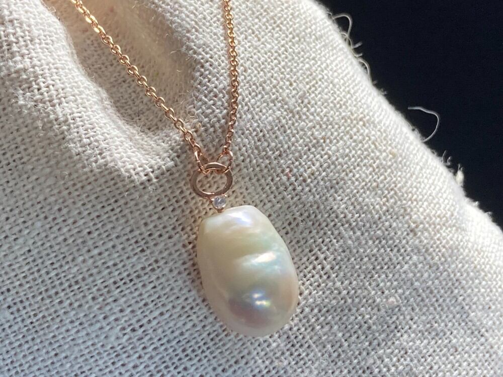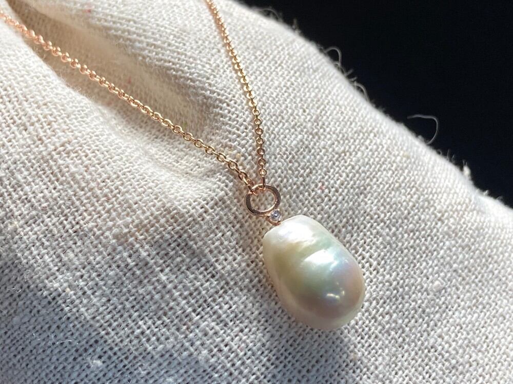 NK31 上品 大粒 バロック 淡水 パール ネックレス 金属アレルギー対応 ピンクゴールド