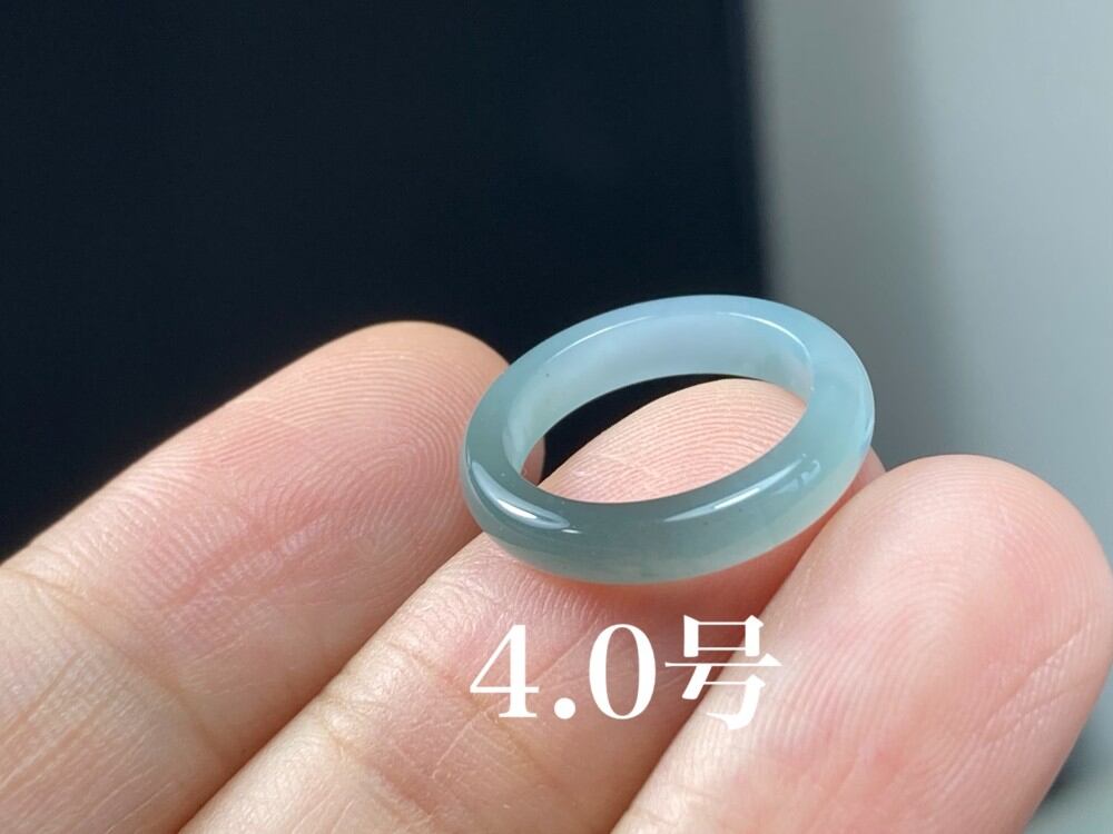 L101 氷種 藍水飄雪花 小指 4.0号 天然 グアテマラ産 A貨 本翡翠 くりぬき リング