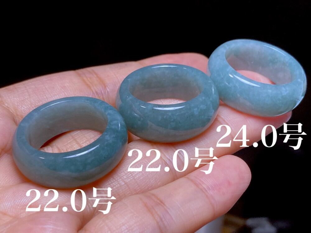 L138 藍水 22.0号 24.0号 天然 グアテマラ産 本翡翠 くりぬき 広幅 リング 板指