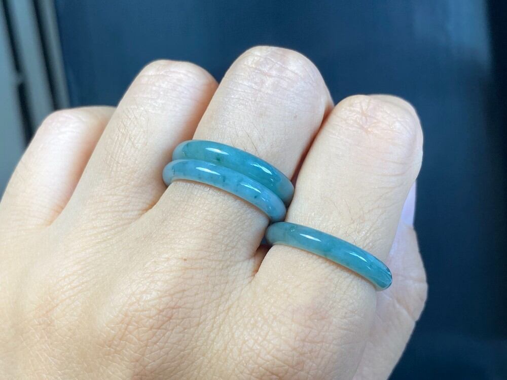 天然グアテマラ産 藍水 A貨 本翡翠 くりぬき リング